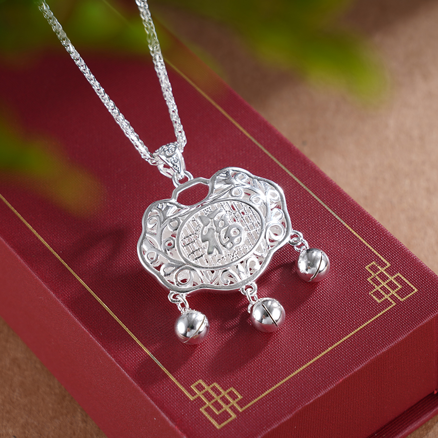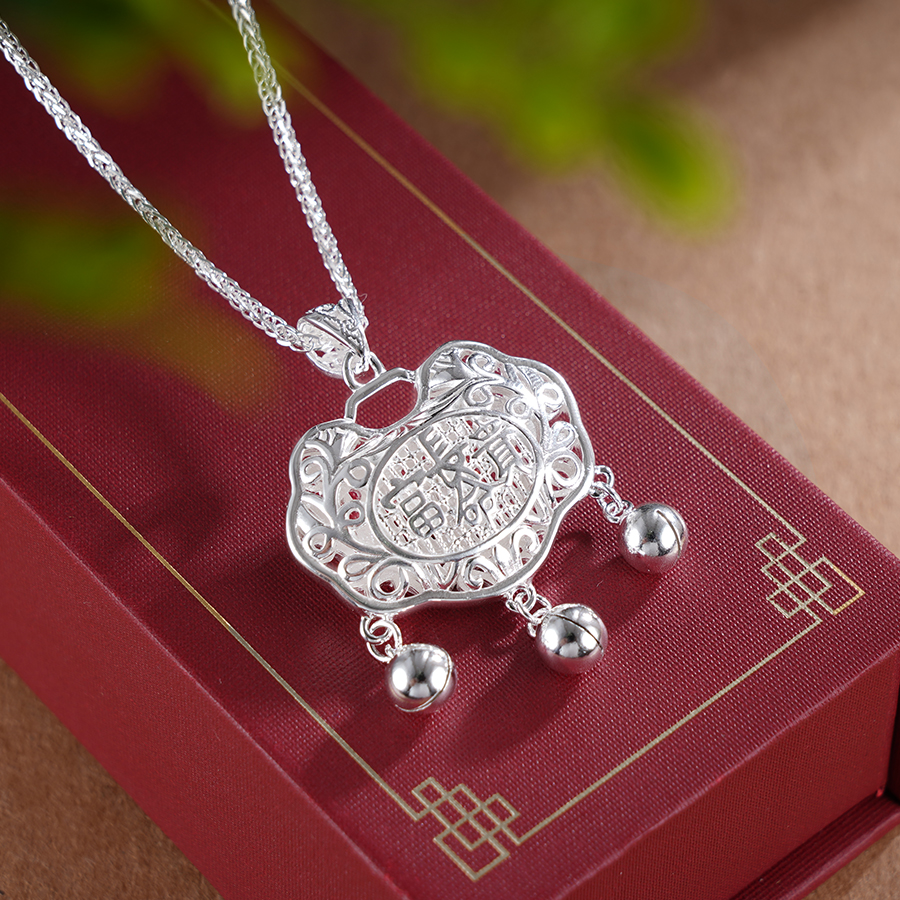 【寓意】:童锁纯银材质,精细抛光,呵护宝宝细嫩肌肤。表面饰以“长命富贵”四字,蕴含了对宝宝幸福美满,富贵一生的祝福。