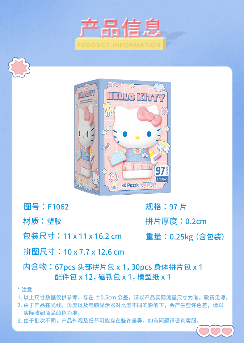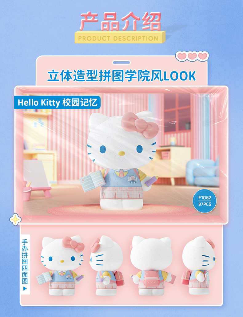 97片 F1062 校园记忆-Hello Kitty立体造型拼图系列