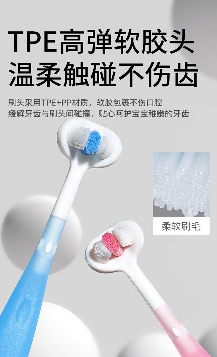 科巢儿童三面牙刷软毛0-2到3到6一12岁以上小孩u型3d宝宝刷牙牙刷一刷两用
