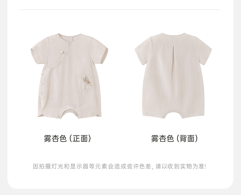 英氏婴儿衣服夏季短袖透气新国风新生儿男宝宝连体衣YRHBJ2R037A