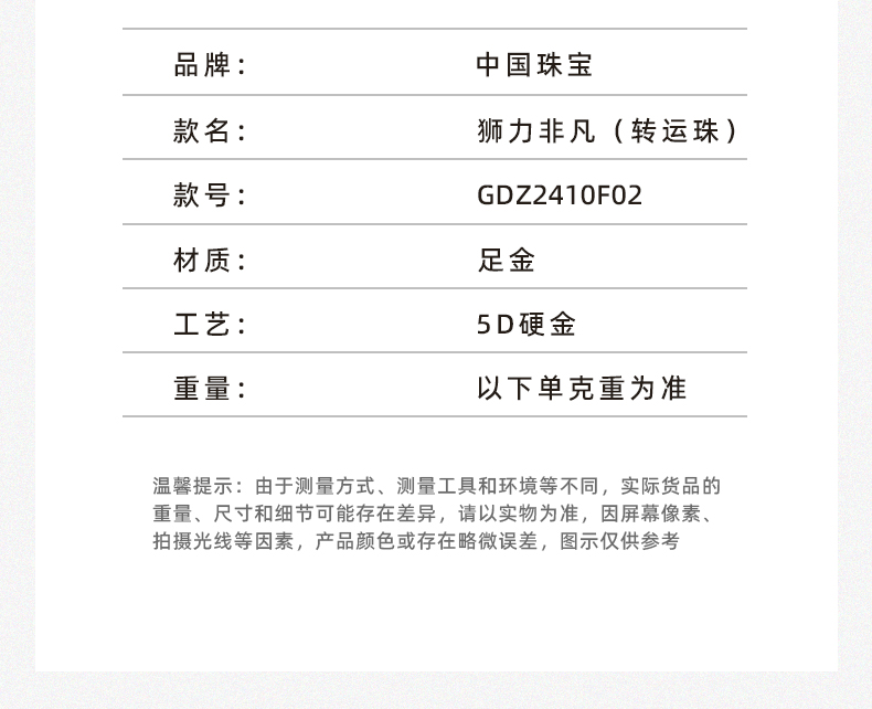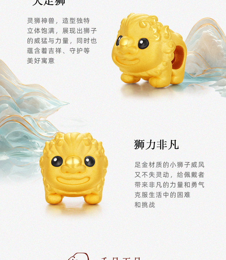 「大足石刻」足金狮力非凡转运珠 小狮子5D黄金手串【Y】