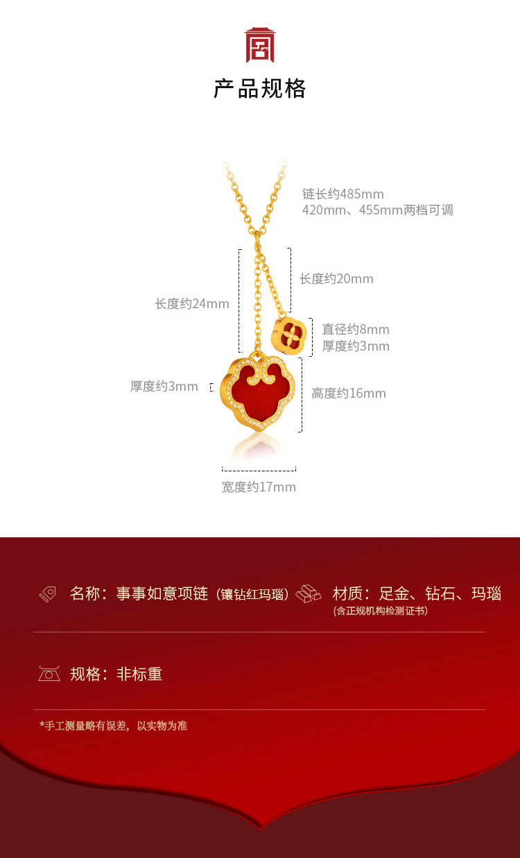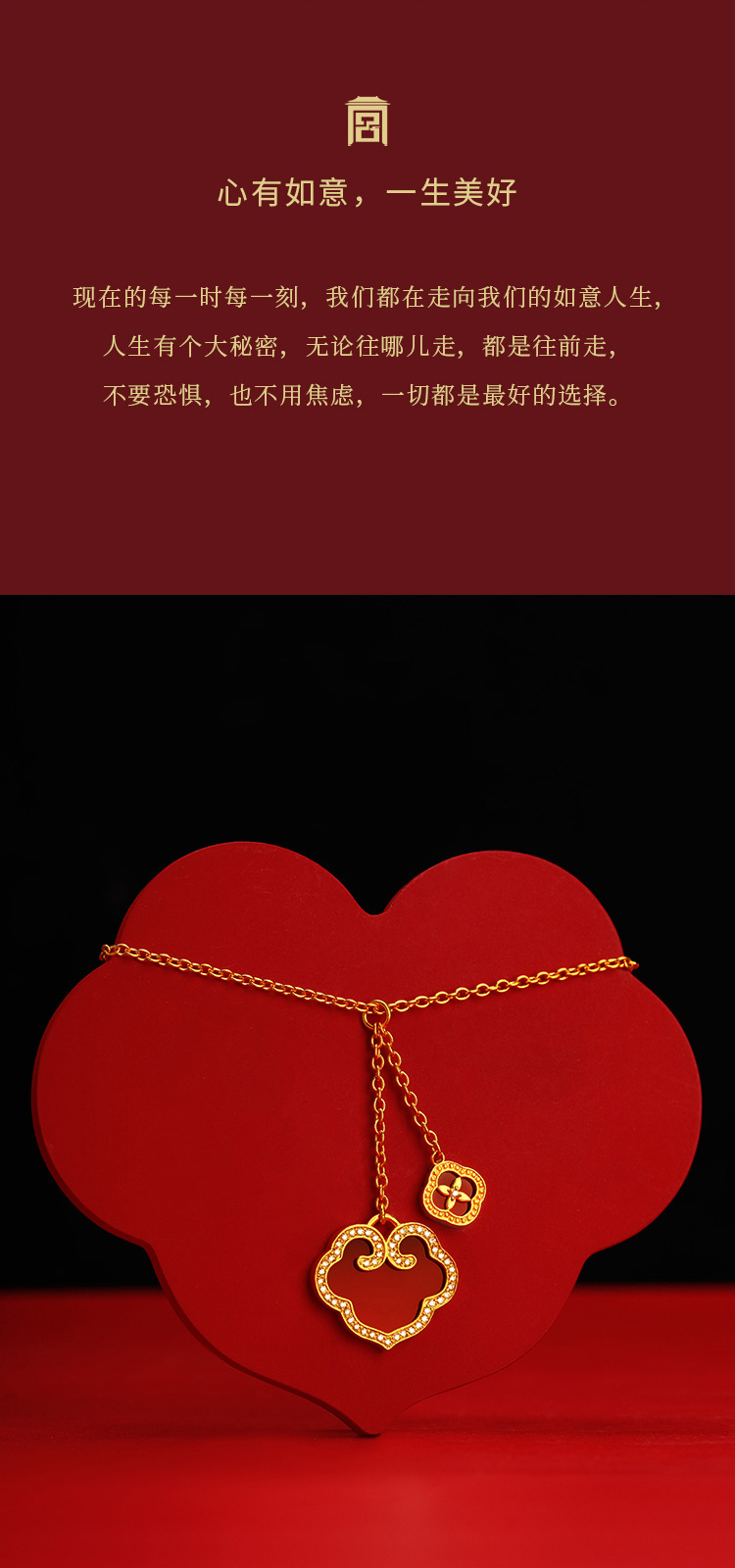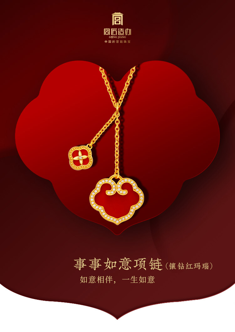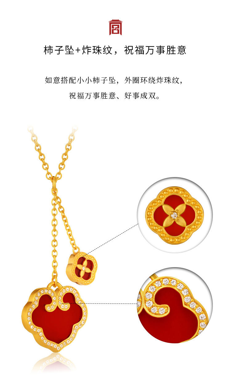 宫匠造办 事事如意项链 黄金镶钻红玛瑙