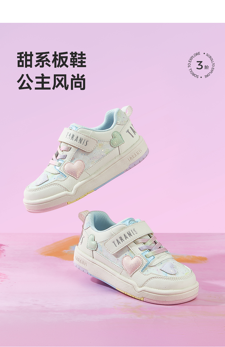 泰兰尼斯童鞋2025秋季新款儿童板鞋甜心公主女童运动鞋轻量休闲鞋 T02X5C6842
