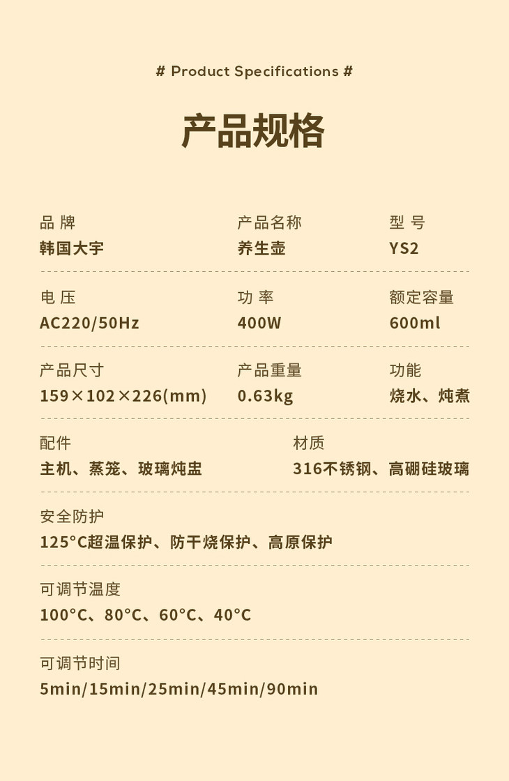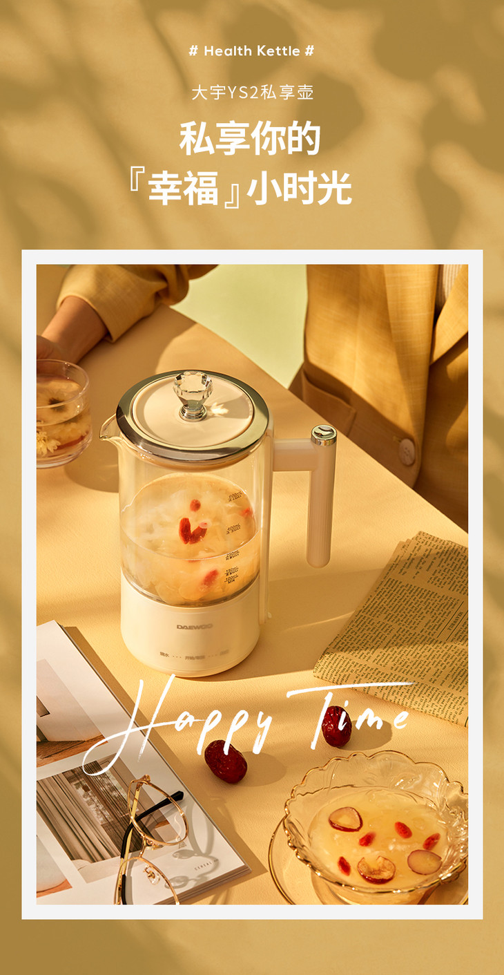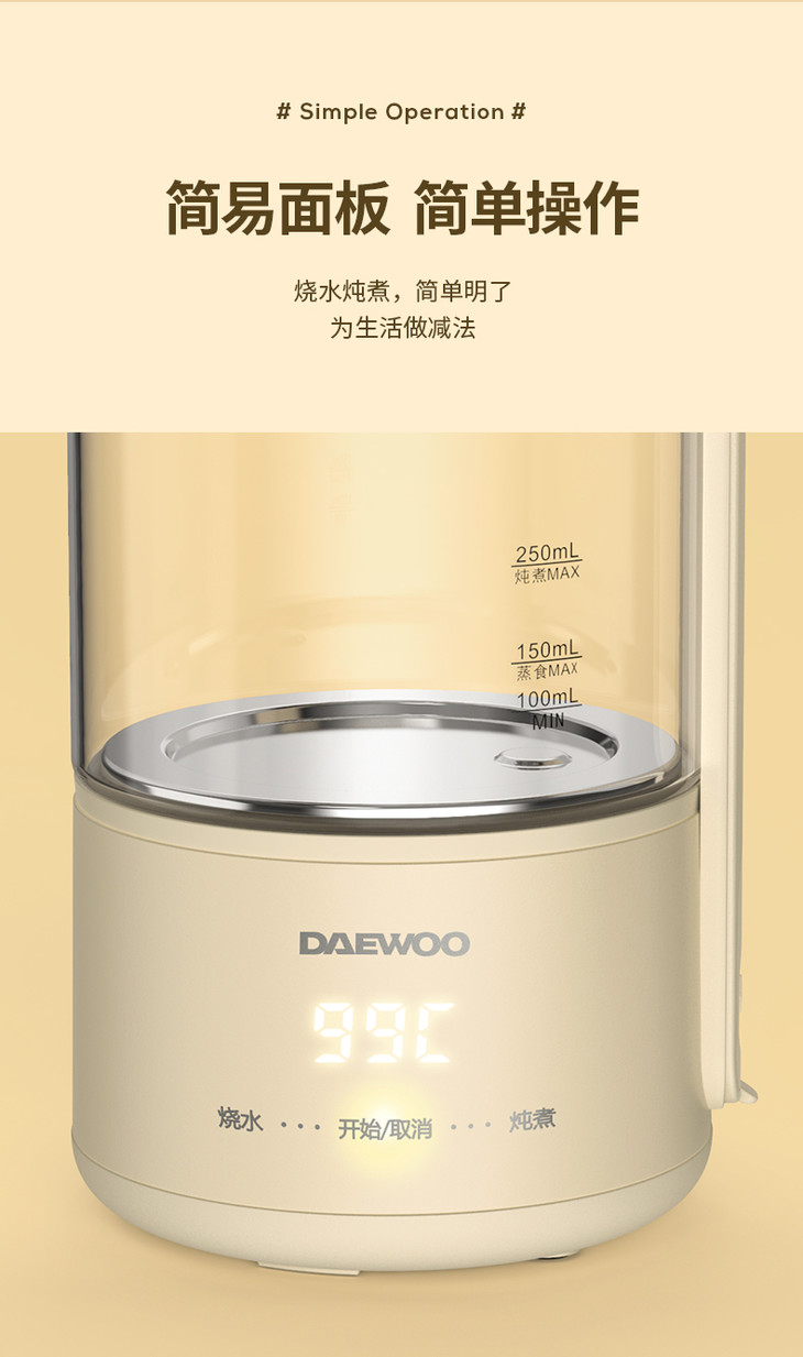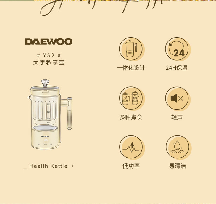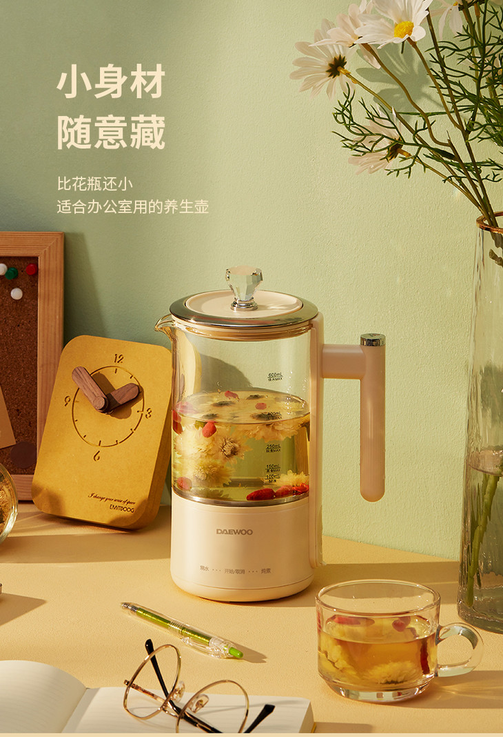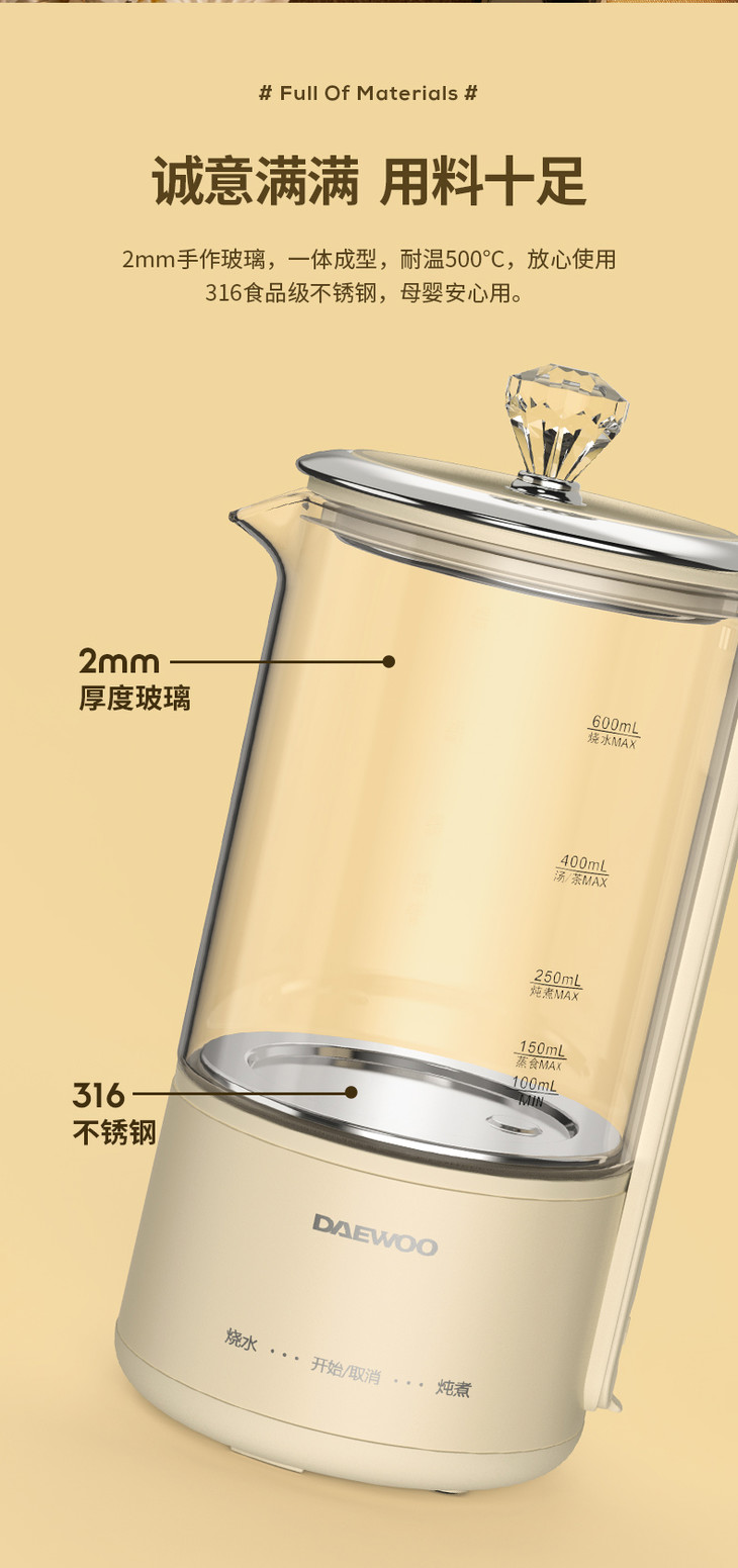 【大宇】韩国大宇YS2淡黄色养生壶家用多功能全自动煮茶器办公室小型玻璃烧水壶