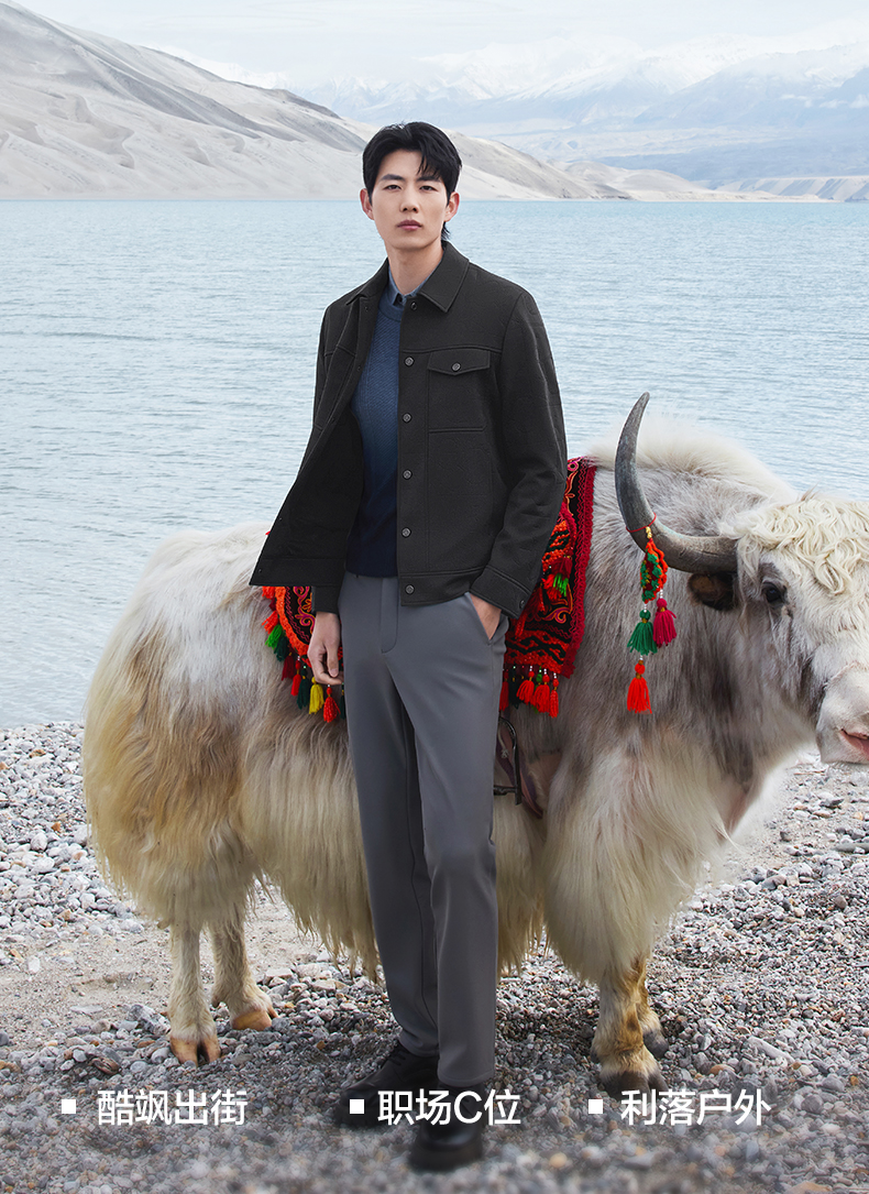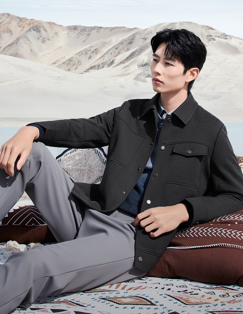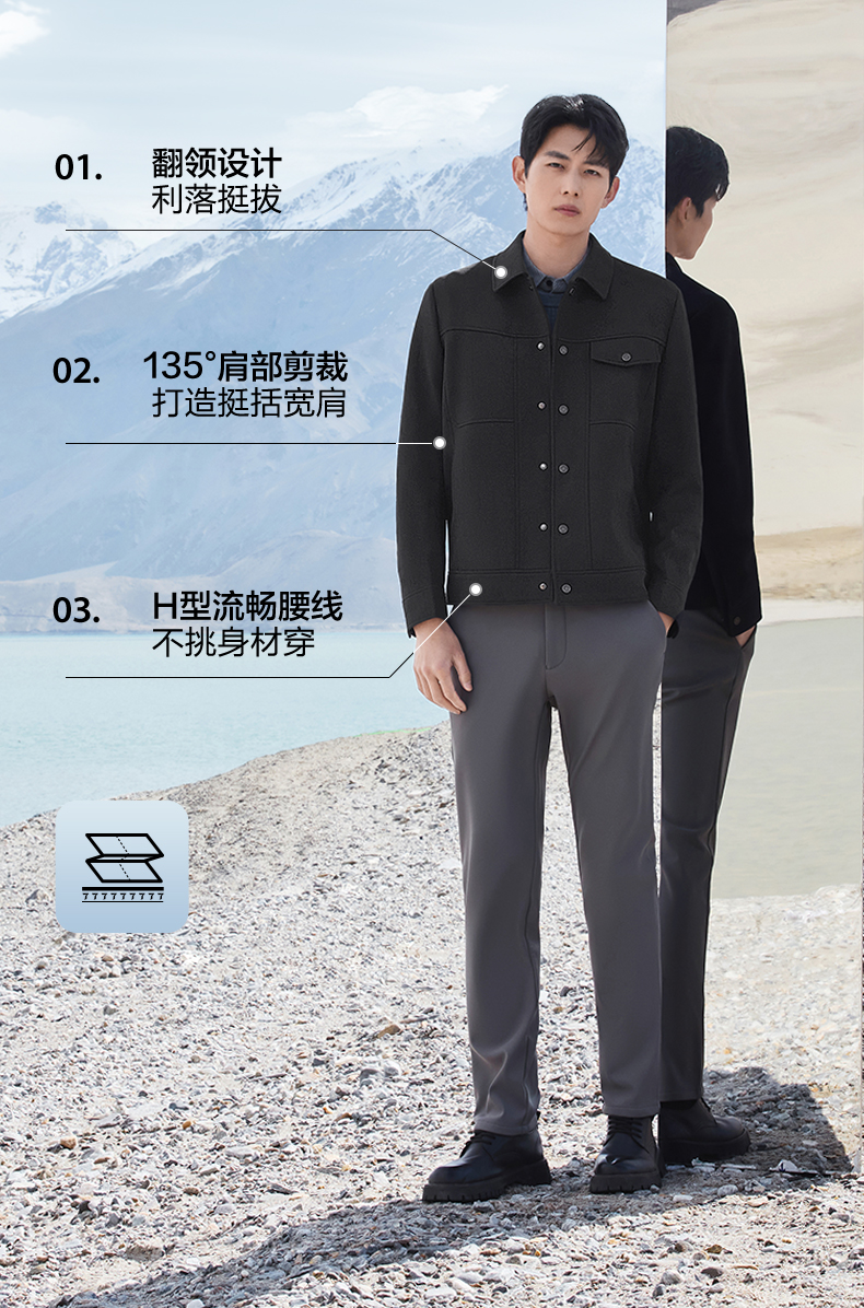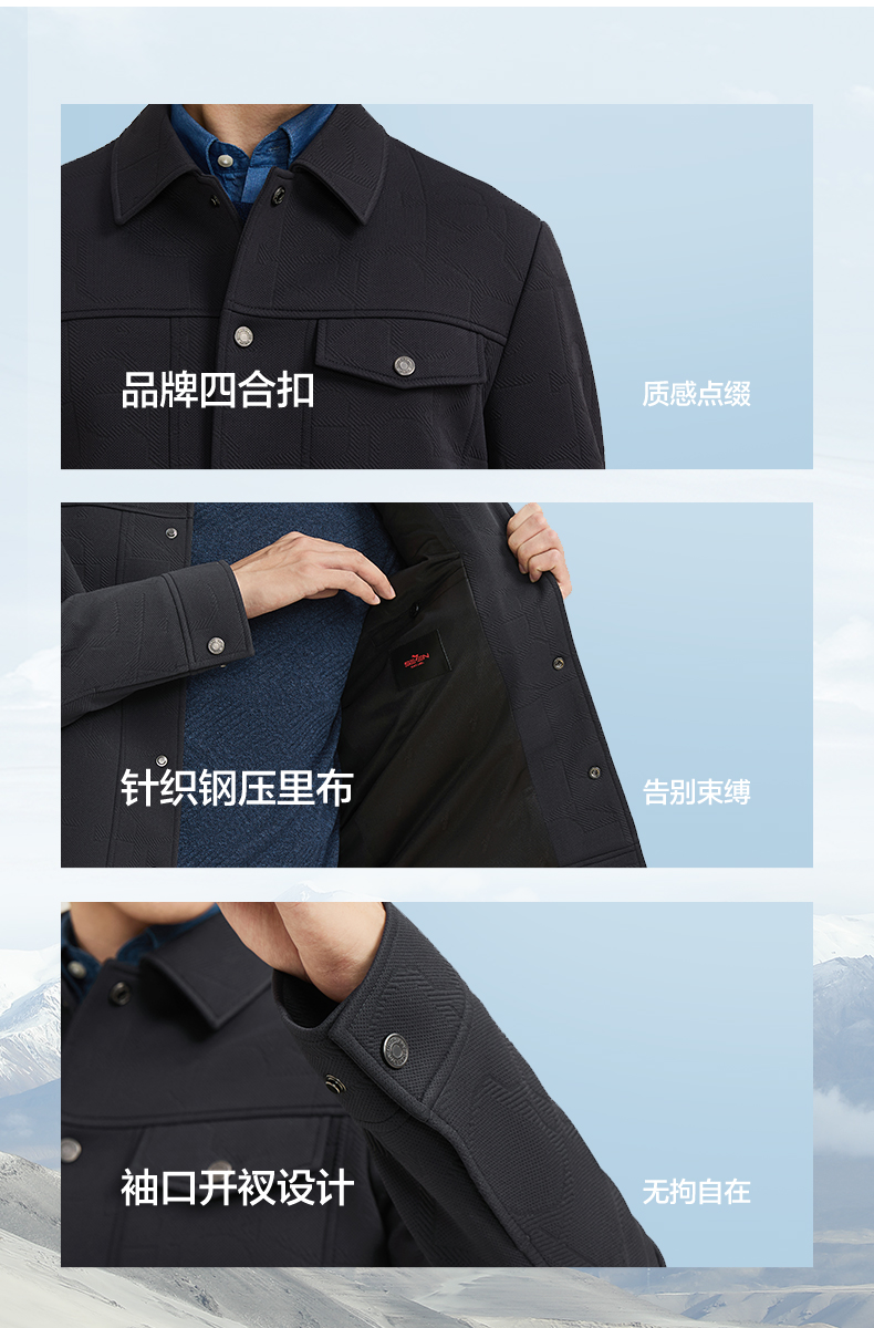 【满身提花工装茄克】柒牌男装夹克2025秋季商务休闲弹力翻领外套129K70780
