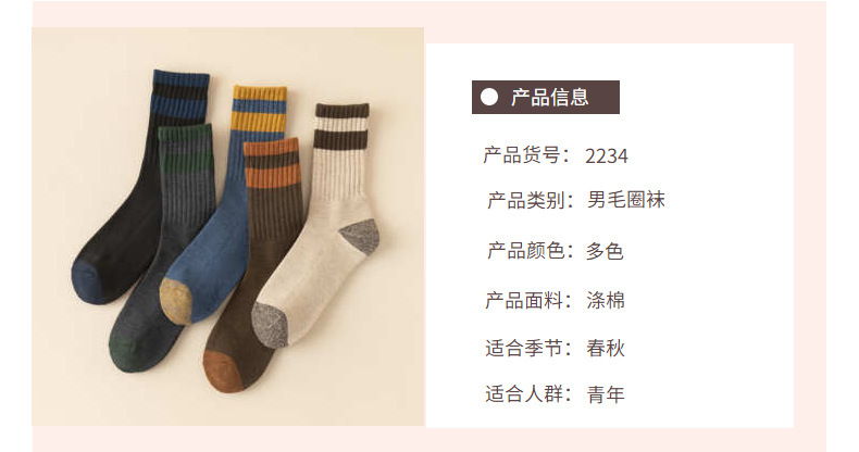 【双杠男士加绒毛圈袜】男士中筒袜冬季加厚保暖简约两杠加绒长袜毛巾底袜子