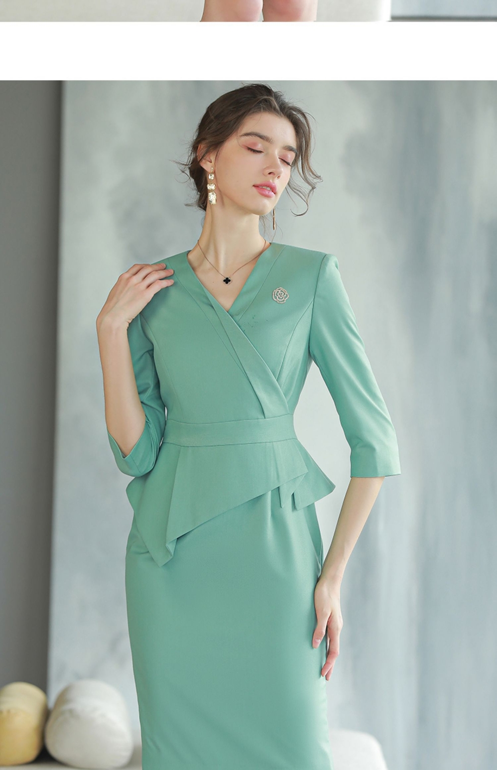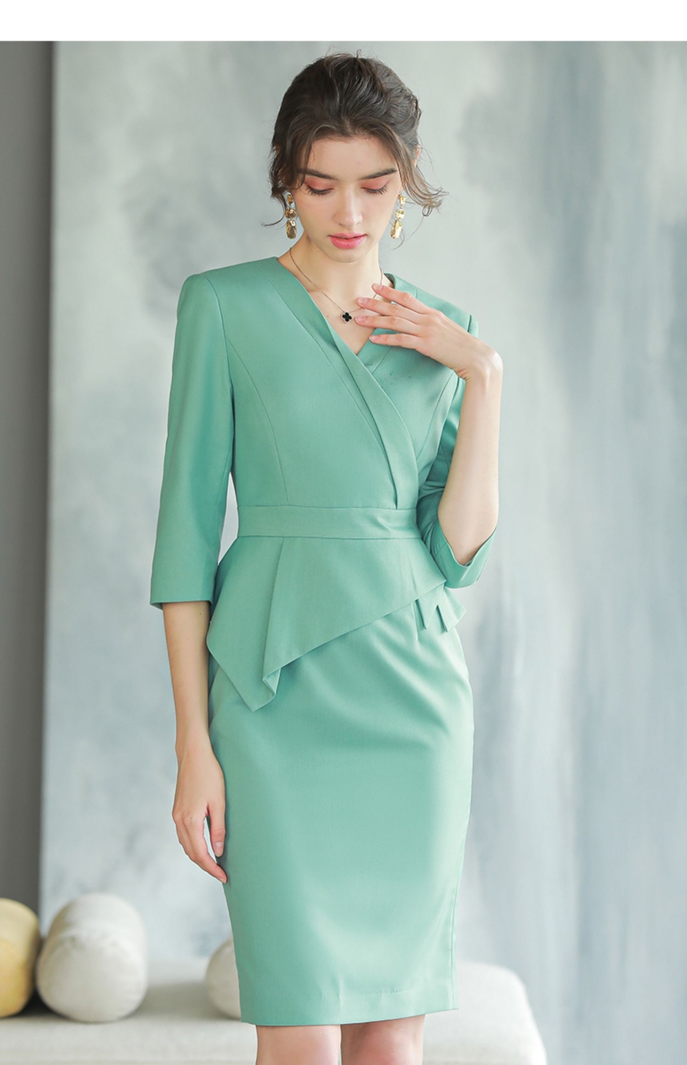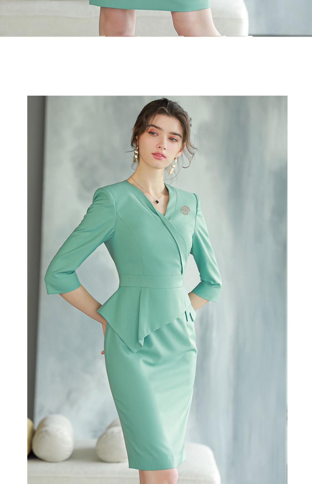 IWY/绿色西装连衣裙五分袖高端气质名媛女神范高级感职业装裙西服Q750
