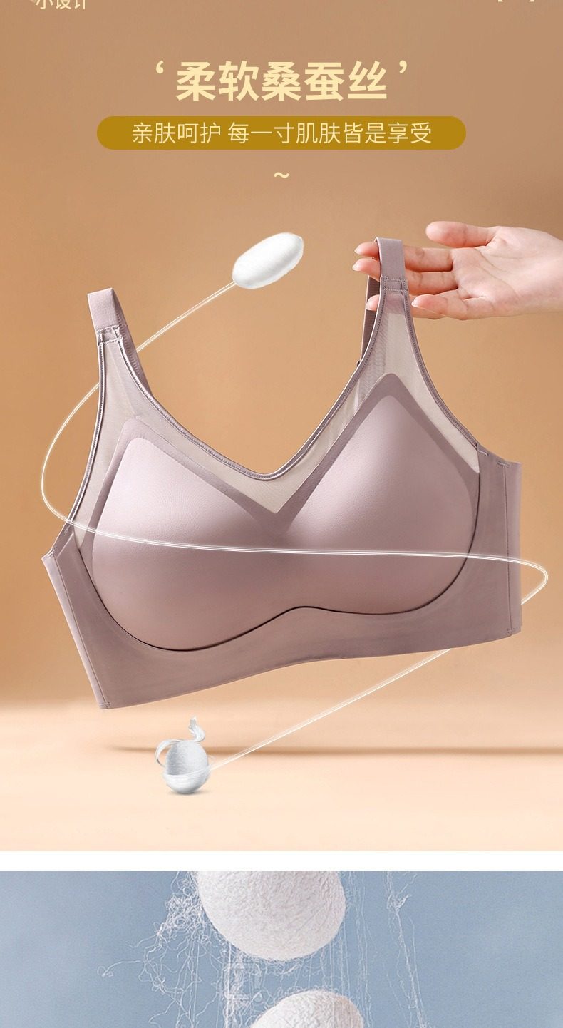 法式贵妇缎面网纱桑蚕丝内衣裸感聚拢提胸上托防下垂收副乳文