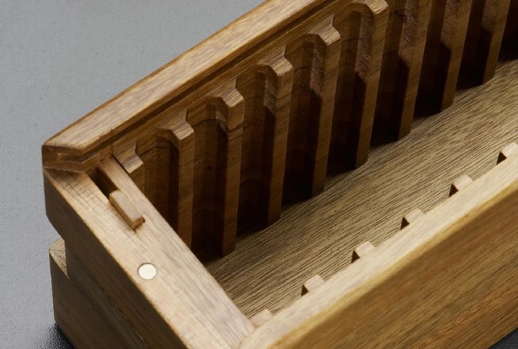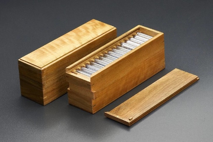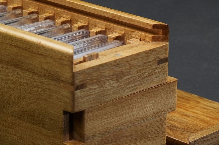 老钱庄自锁式通用15只装评级币抽拉盒(独家专利产品),定制特殊专用刀模切槽,盒盖设计有暗闩,向右推动暗闩,盒盖方能抽拉打开,外盒尺寸:28.0*8.1*10cm,净重0.9kg,采用小叶香樟实木精工制作,本色油漆,适用于:PCGS新老款盒、PCCB新老款盒、NGC新老款盒、公博(早期)标准盒、ACCA,闻德,华夏,大榕树,园地,众诚/保粹(个别批次尺寸)等厚度10mm的评级币盒,各式评级币松紧适宜!