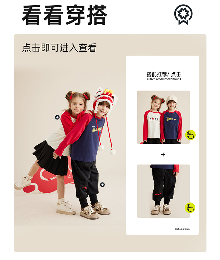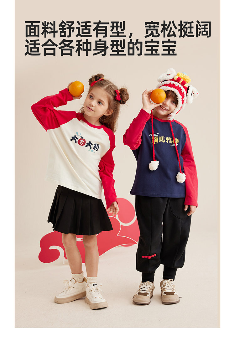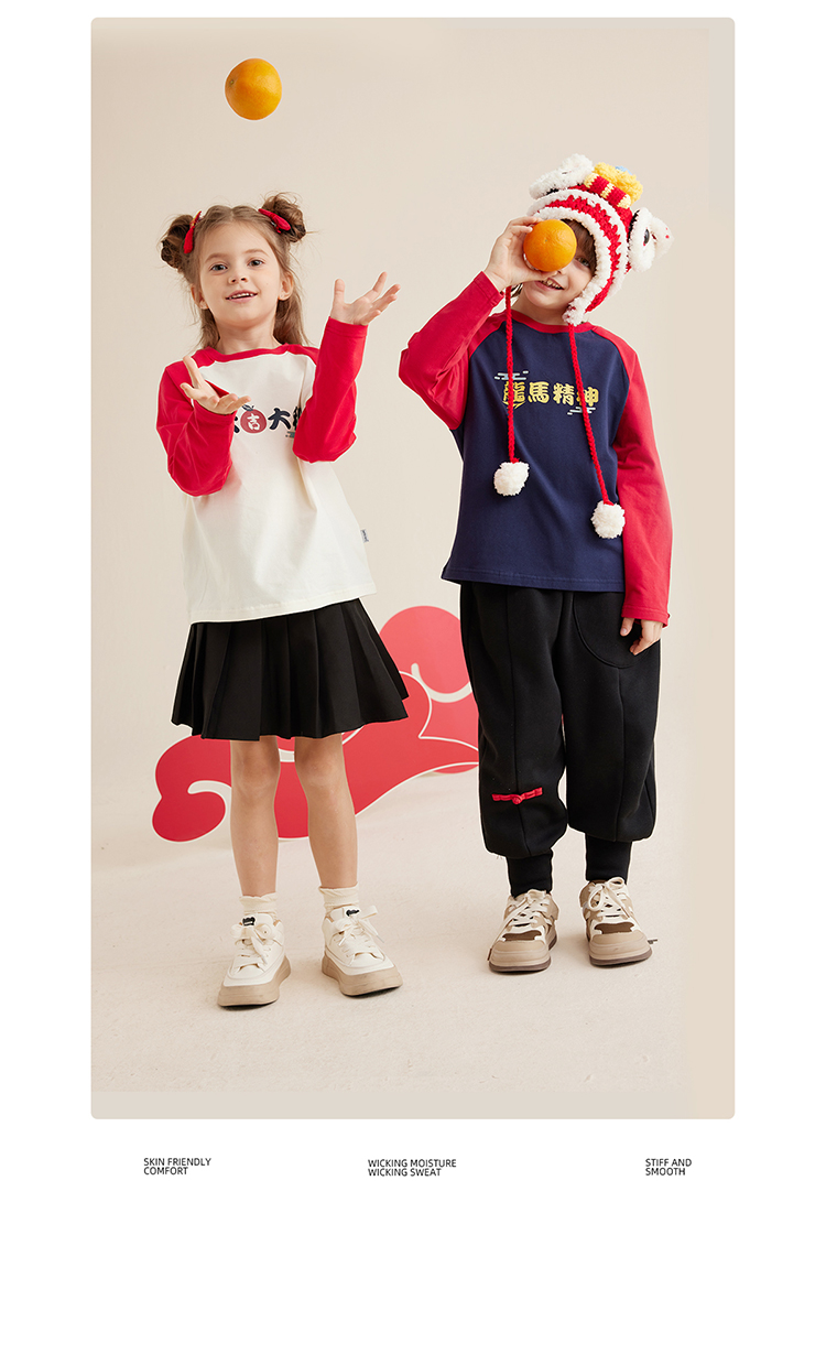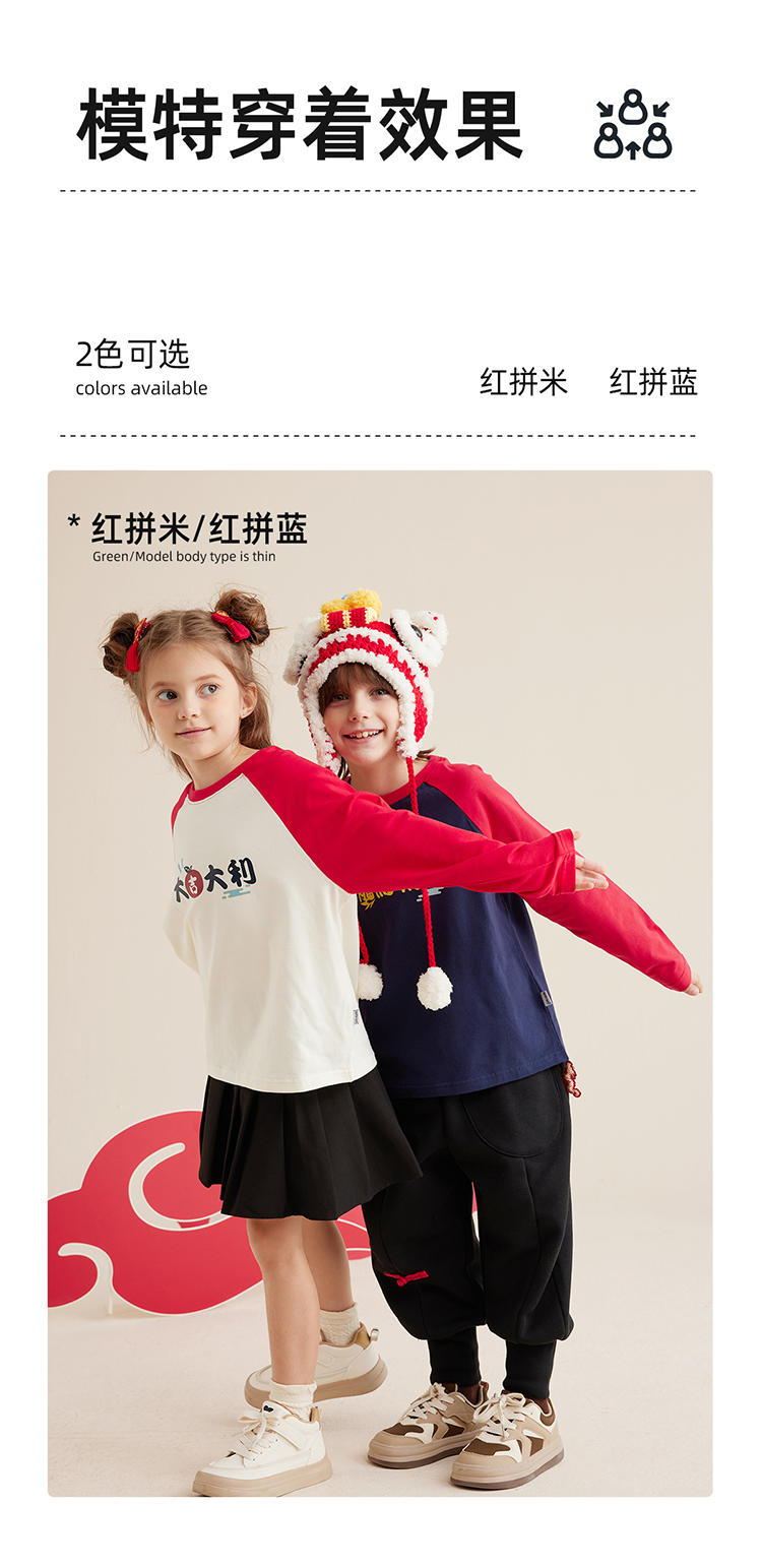 【品牌优选】【把好运穿在身上】儿童国潮印花拼色T恤PDT2314