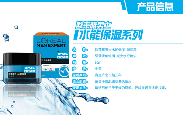 欧莱雅男士水能保湿强润霜50ml(4802172)