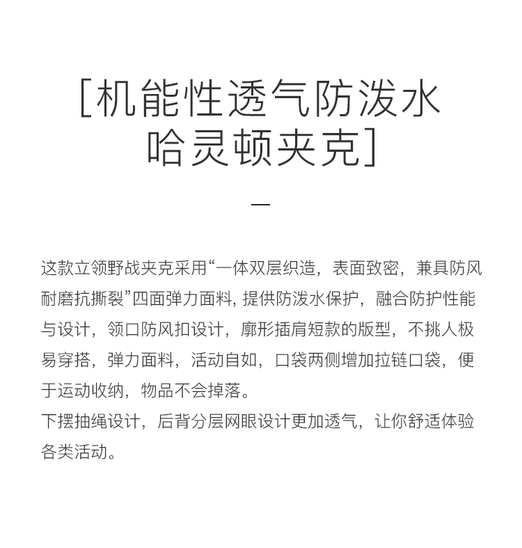 WHEELS and WIND 男女中性款机能性透气防泼水哈灵顿夹克外套