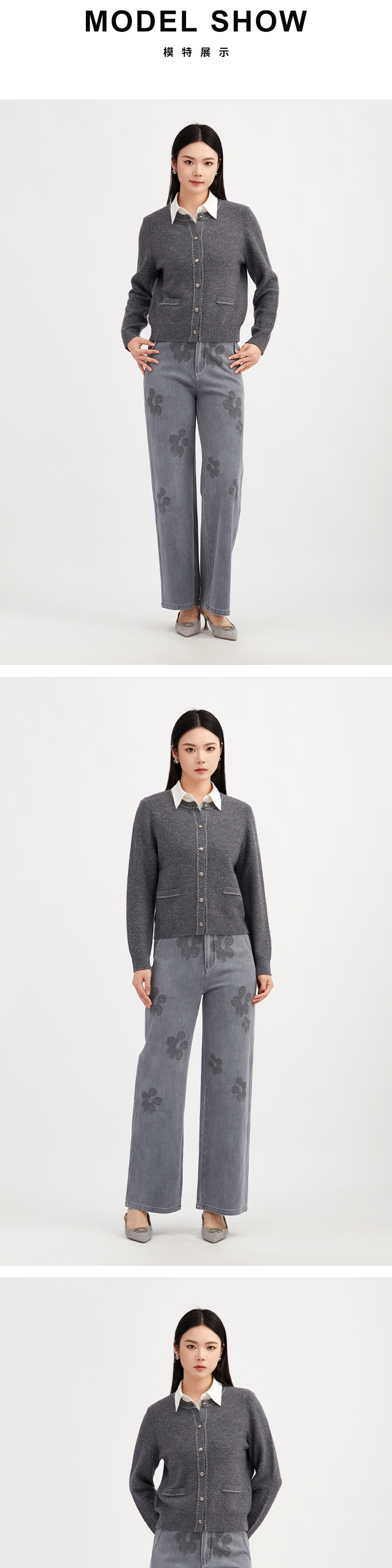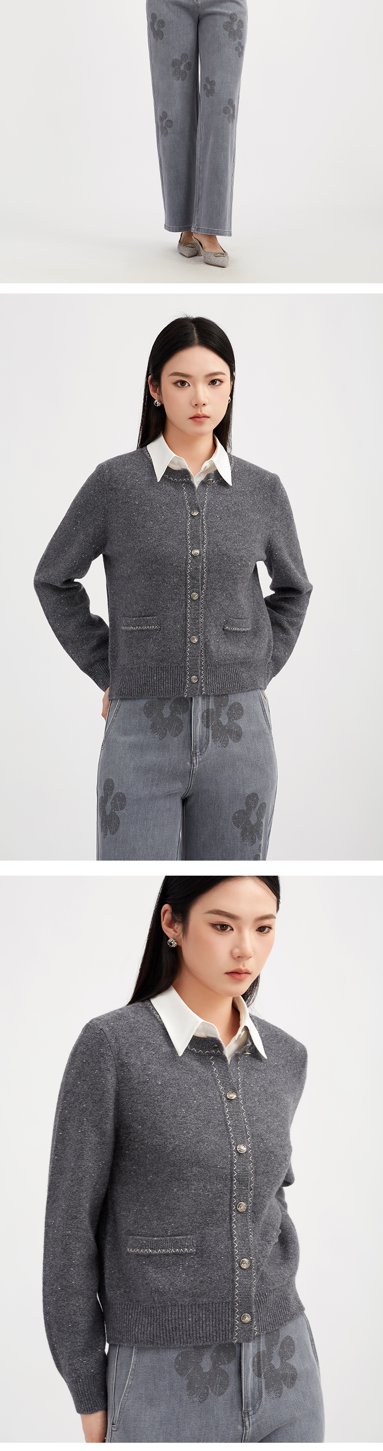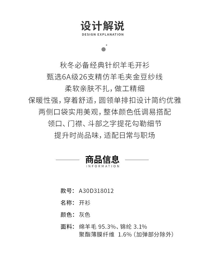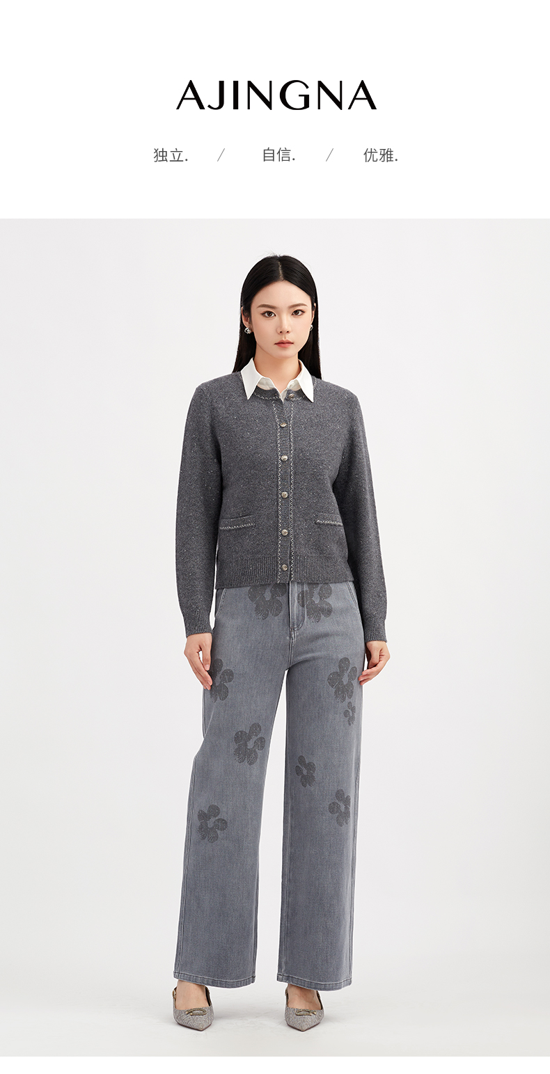【商场同款】阿菁娜冬季新款6A级羊毛开衫金豆纱线之字提花圆领单排扣通勤日常百搭A30D318012