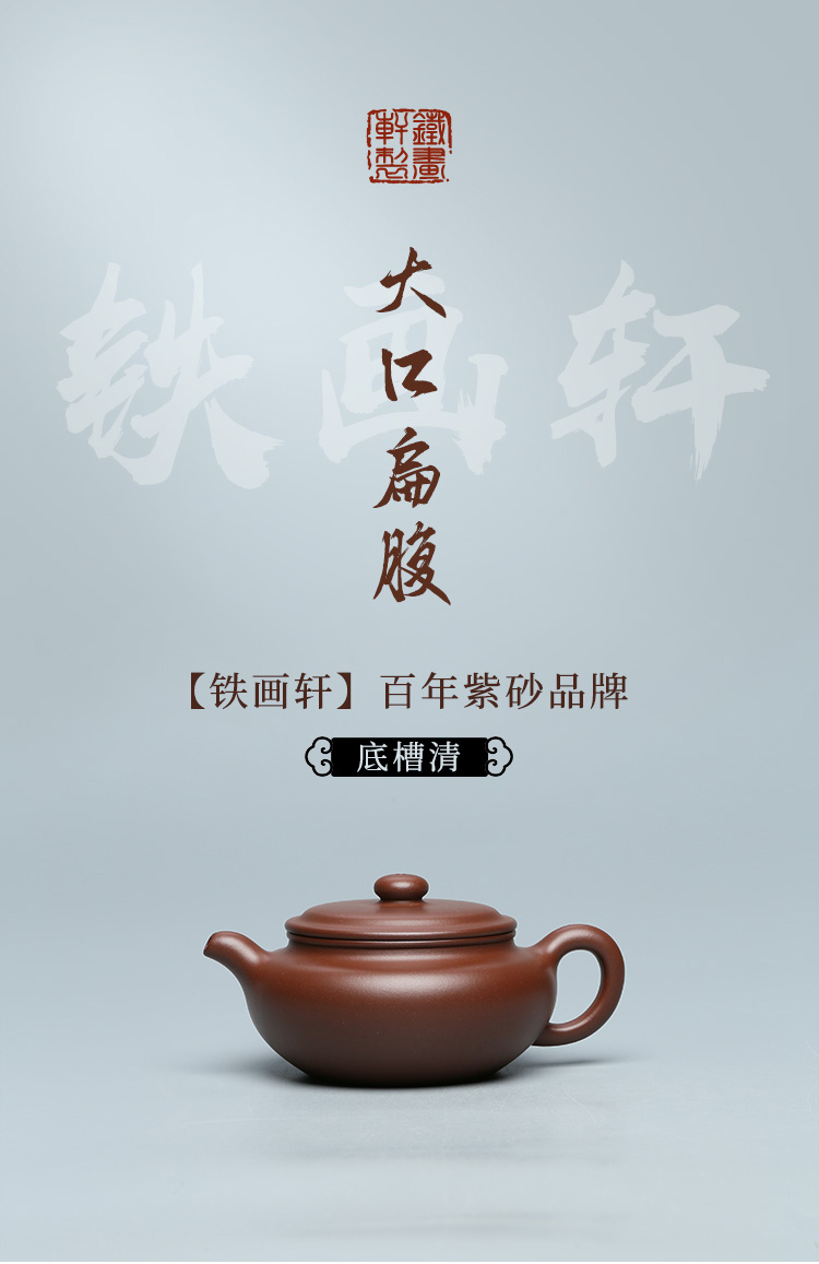 百年紫砂品牌铁画轩出品 底槽清 大口扁腹壶紫砂壶
