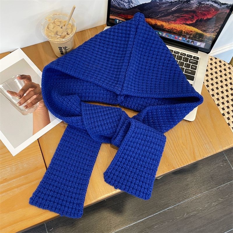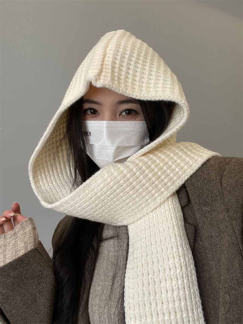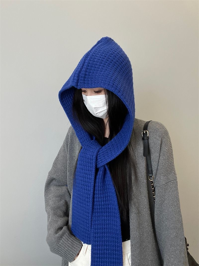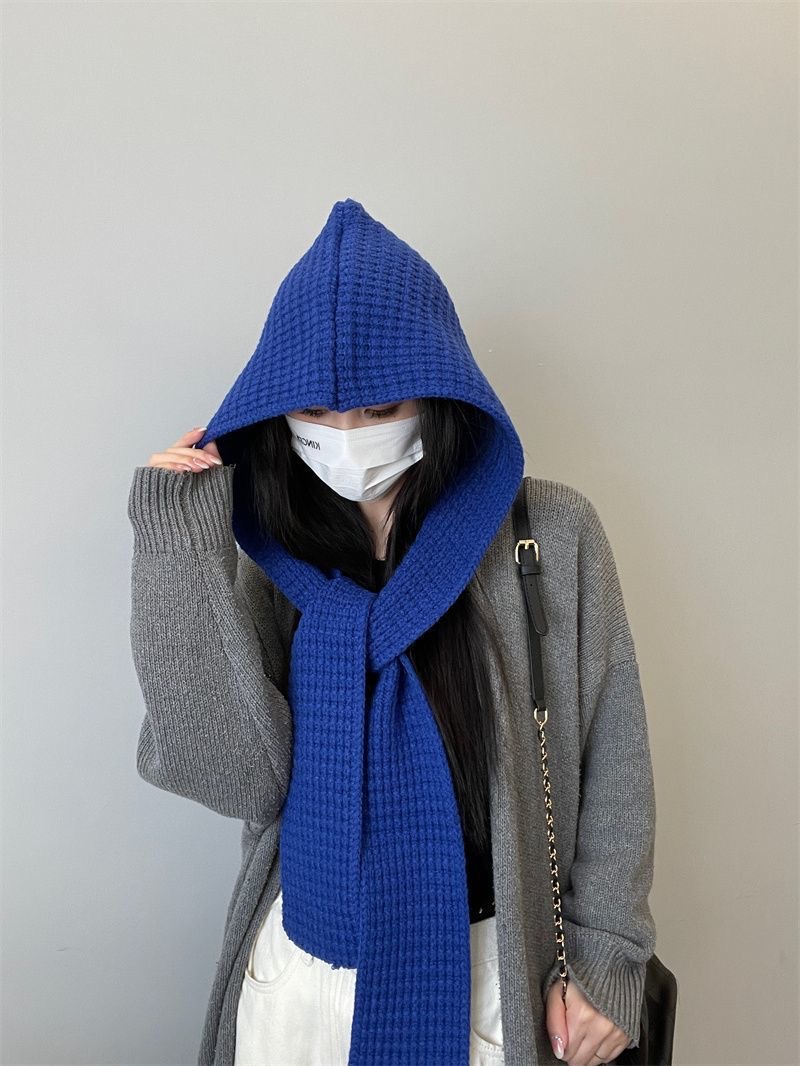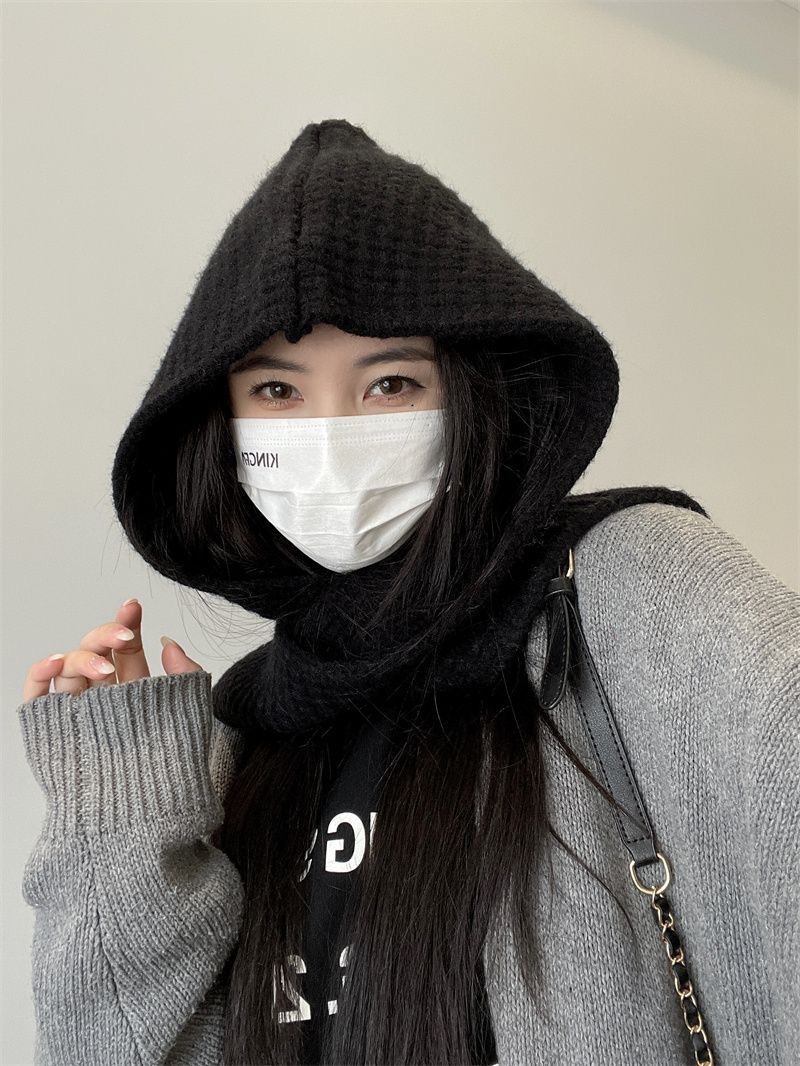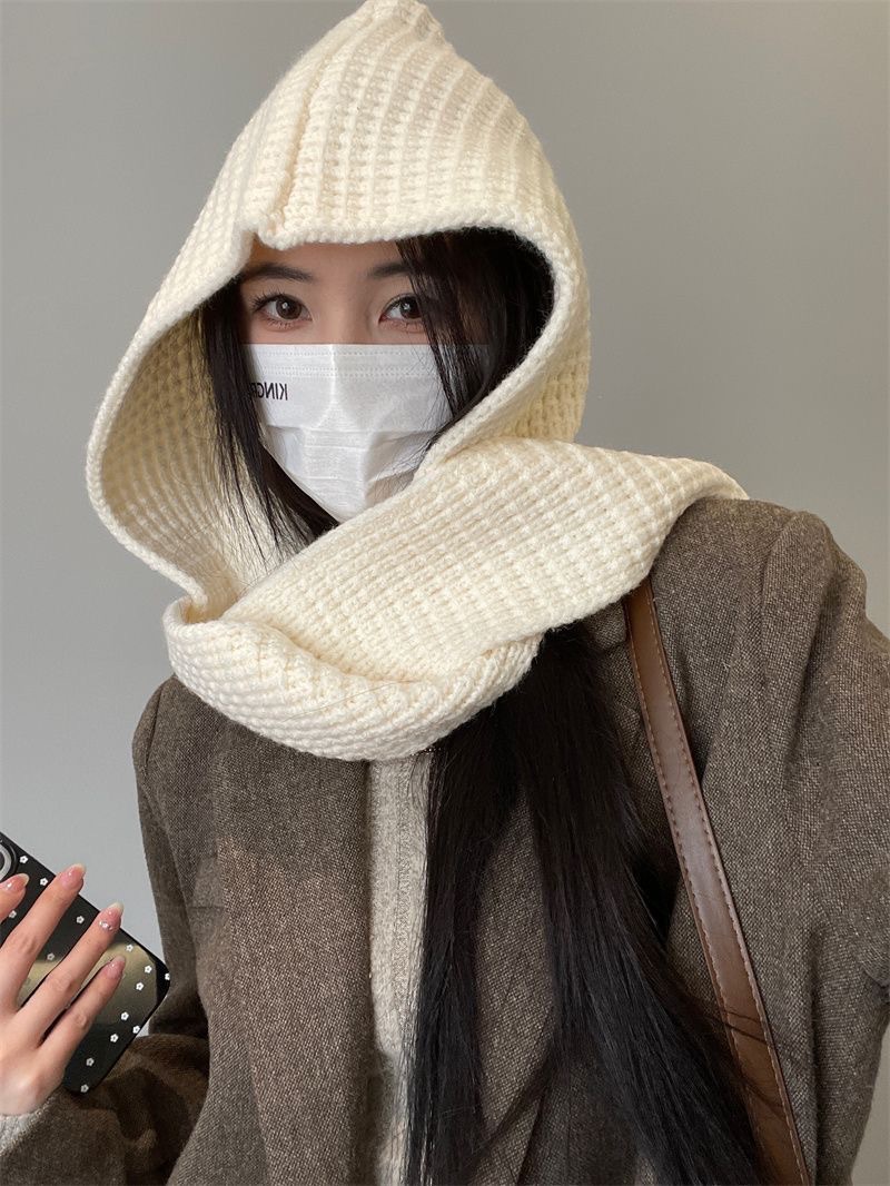 【懒人神器❗️防风防寒】连帽披肩帽子围巾一体两件套纯色保暖秋冬季两用针织斗篷百搭时尚。ja