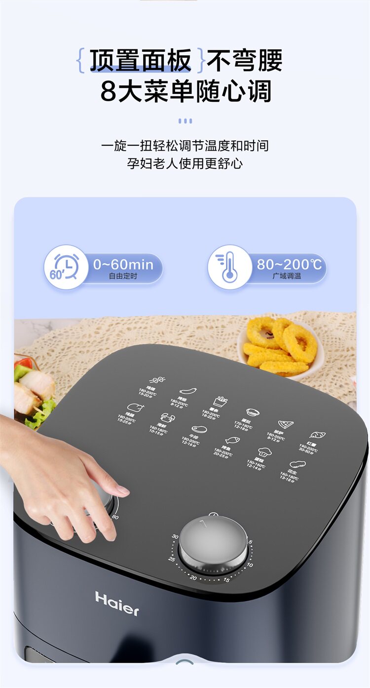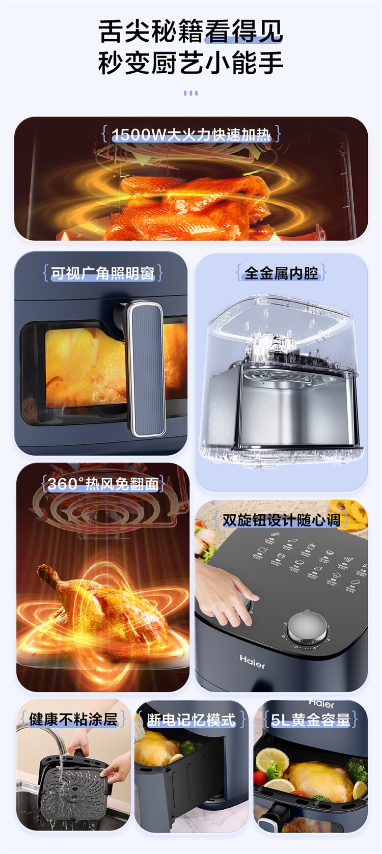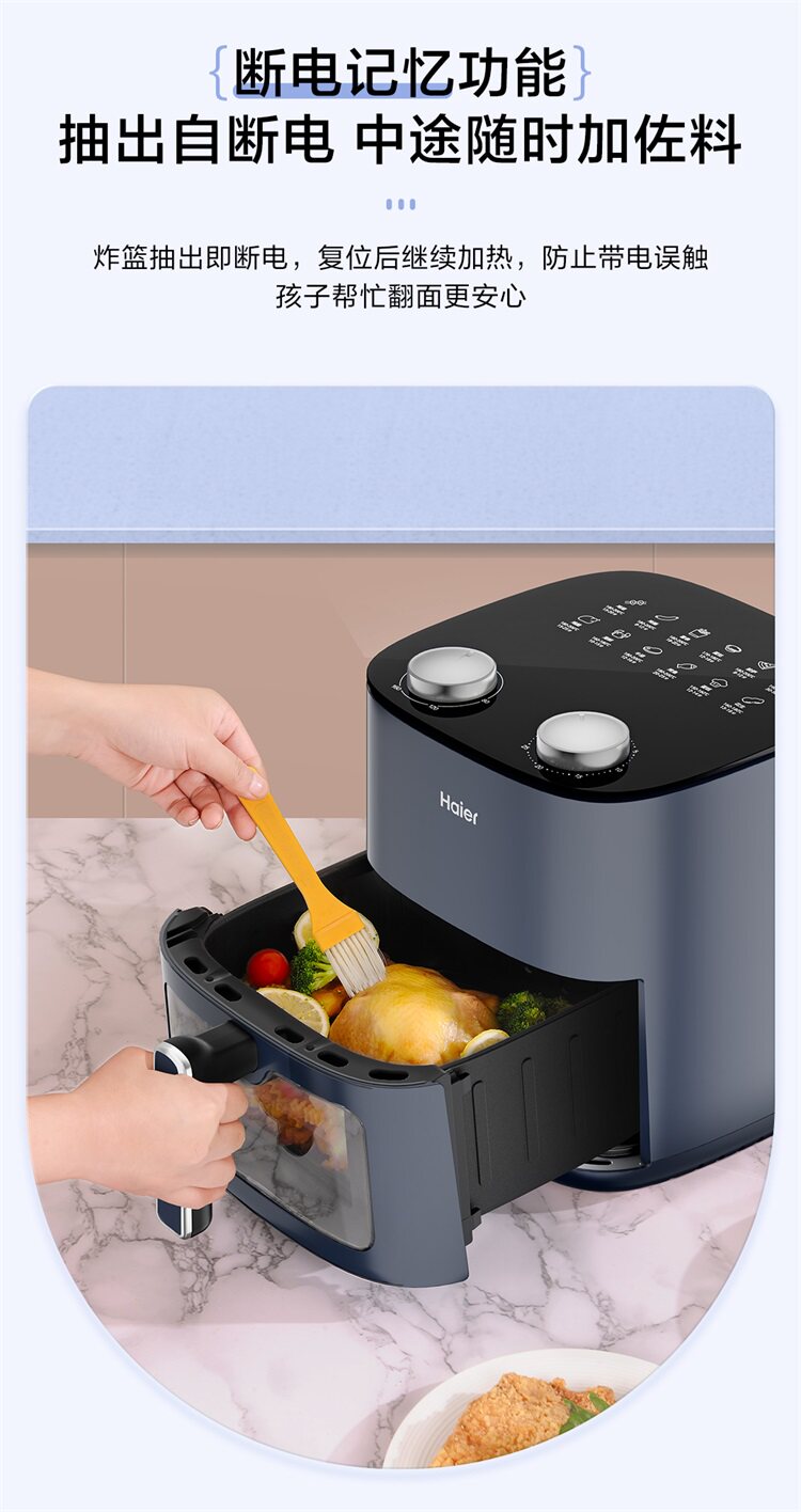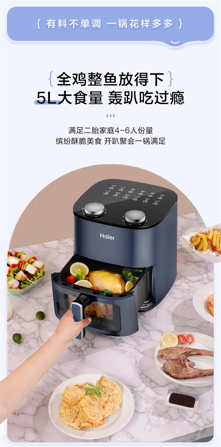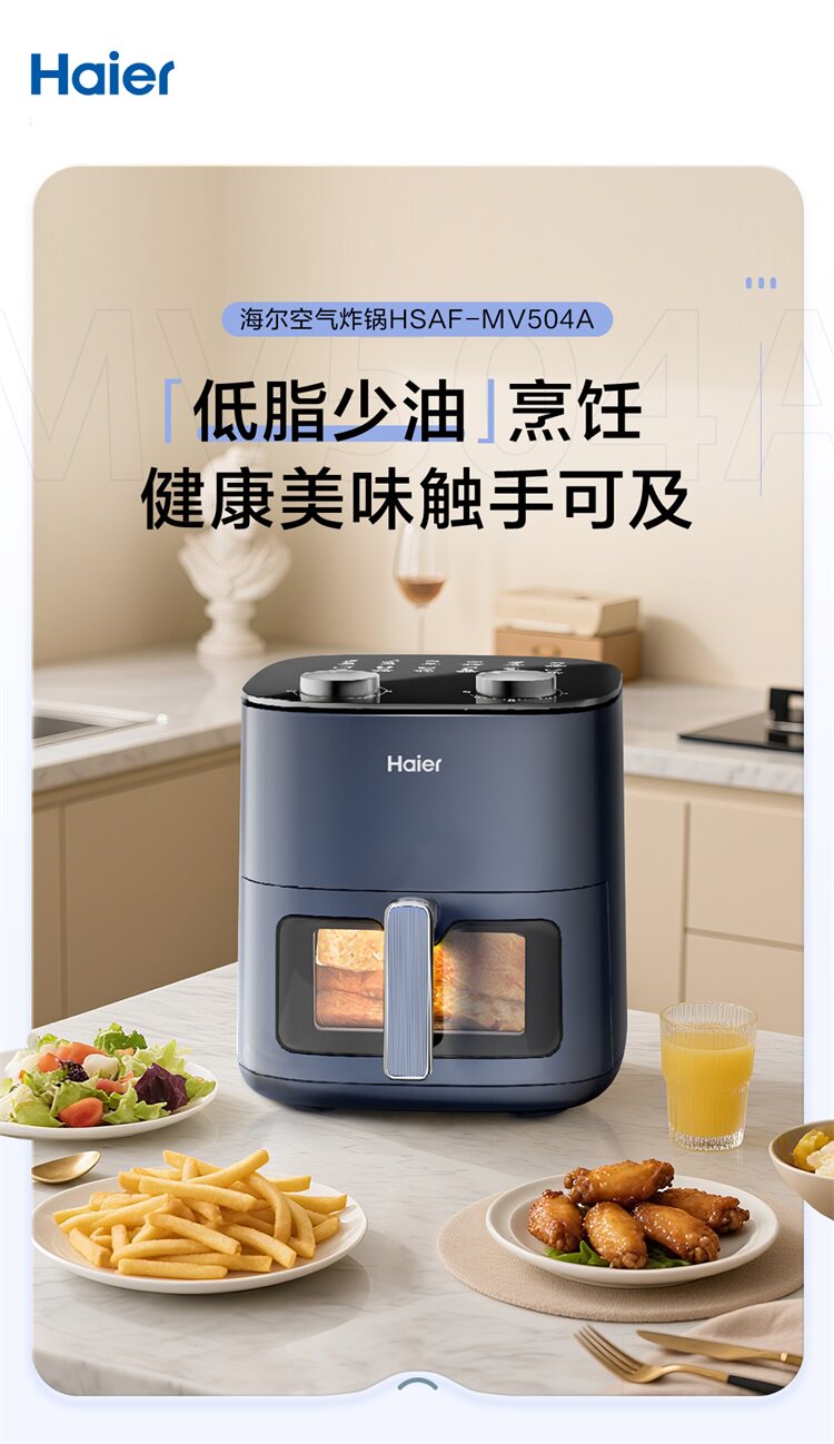 海尔家用5L大容量空气炸锅多功能可视空气炸锅 HSAF-MV504A