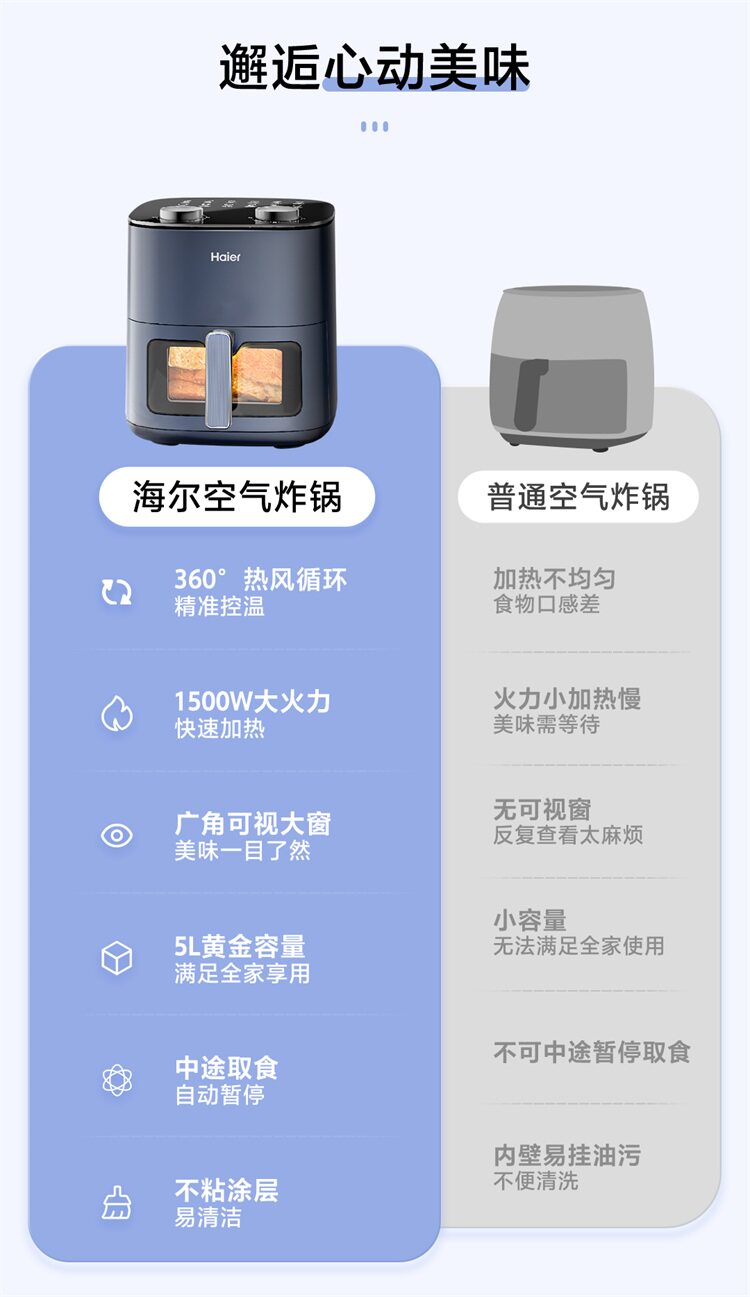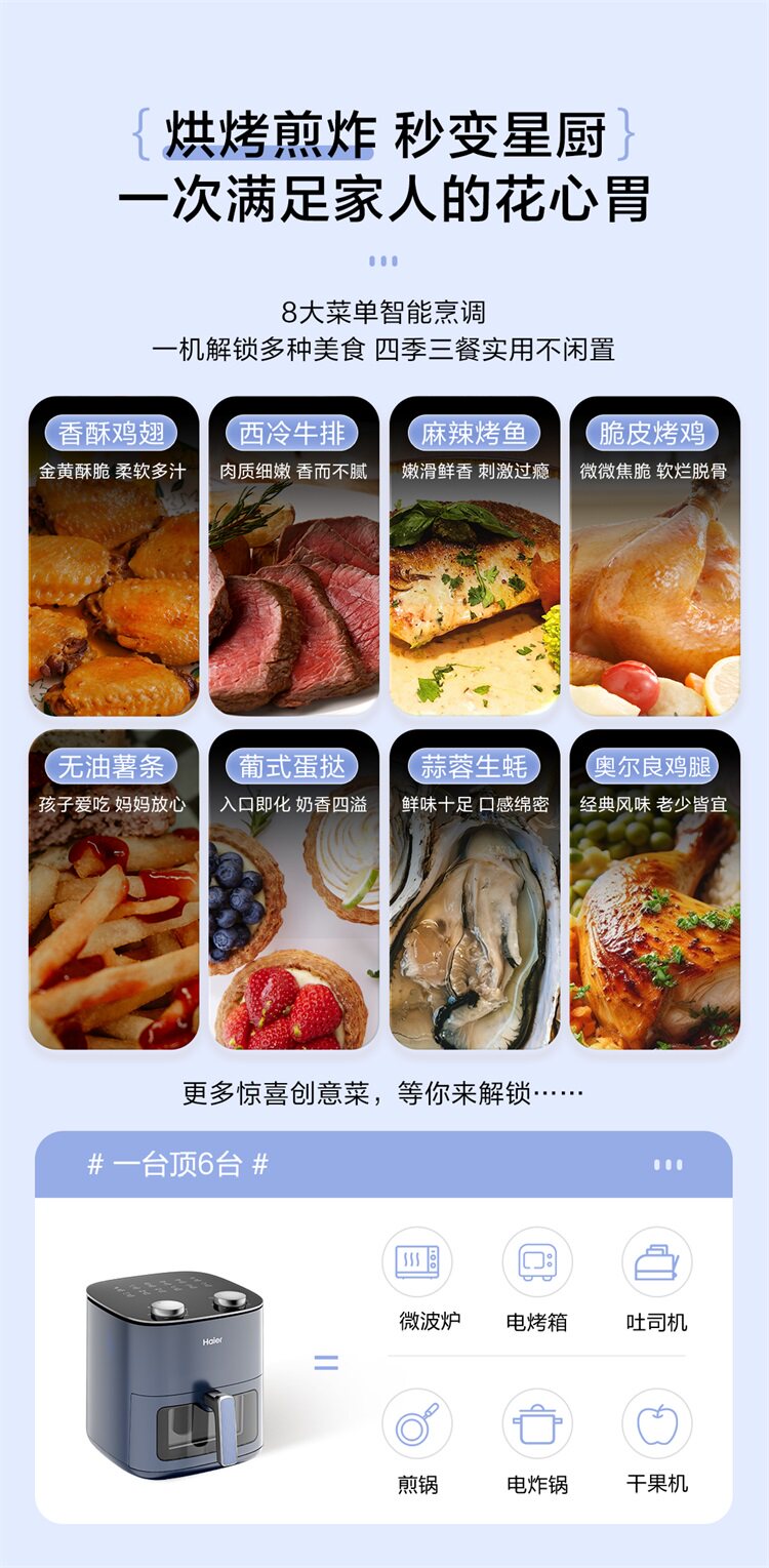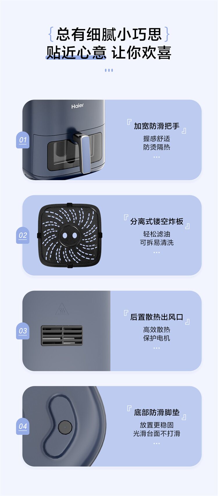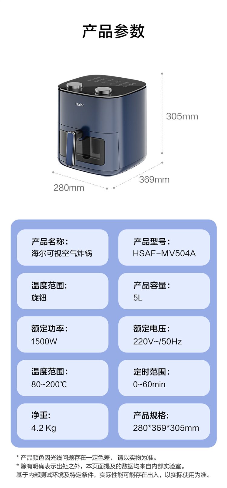 海尔家用5L大容量空气炸锅多功能可视空气炸锅 HSAF-MV504A