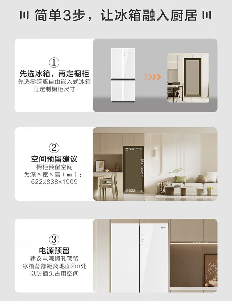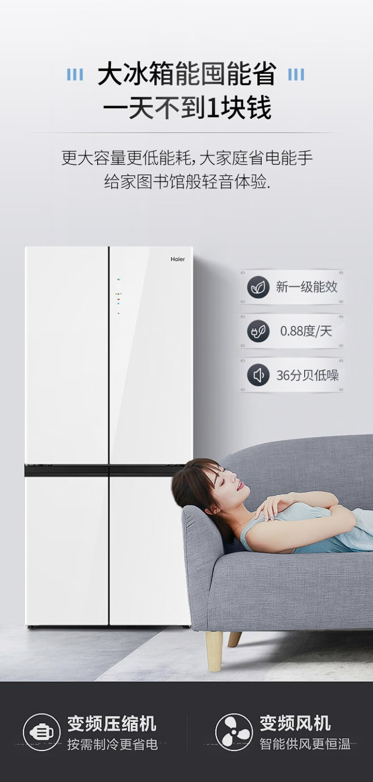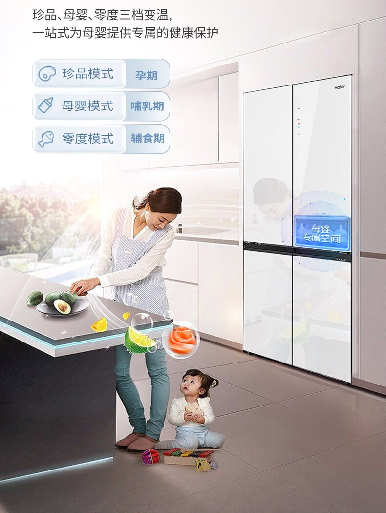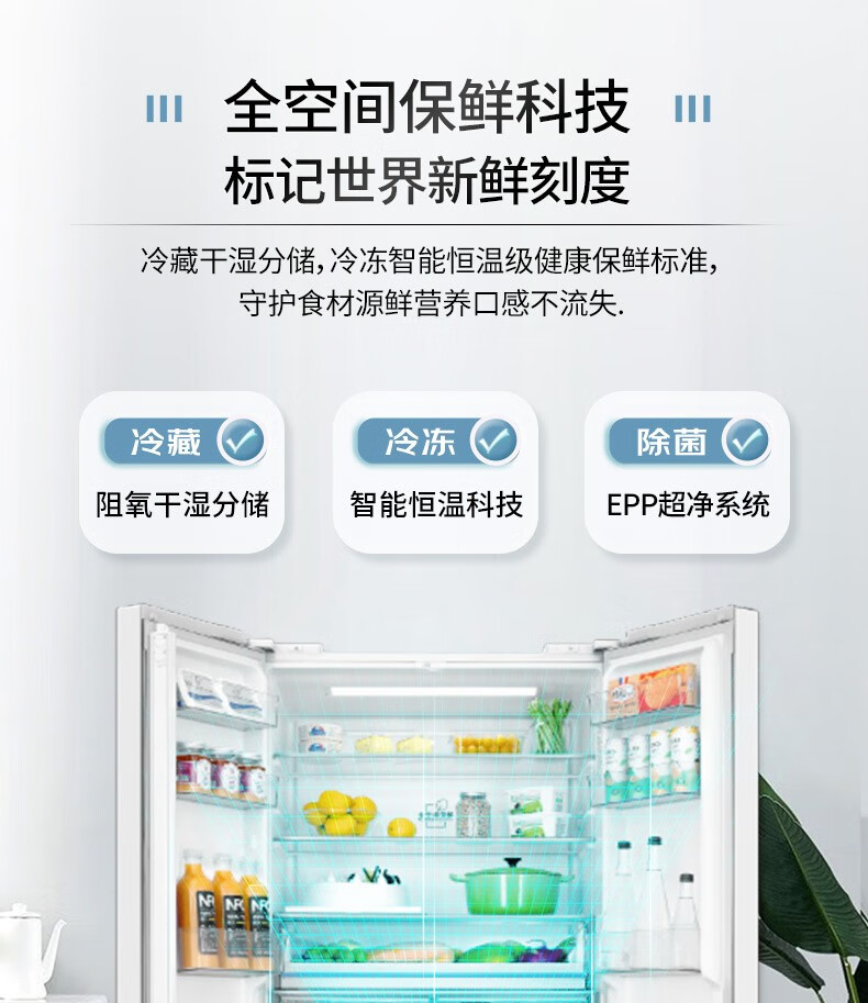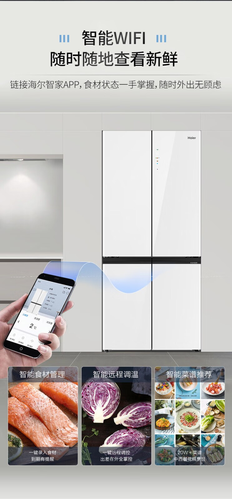 海尔(Haier)冰箱零距离嵌入式全空间保鲜 四开门十字对开门一级双循环风冷无霜家用超薄零嵌除菌净味白色冰箱 506L全空间保鲜+EPP除菌净味+零嵌+底部散热