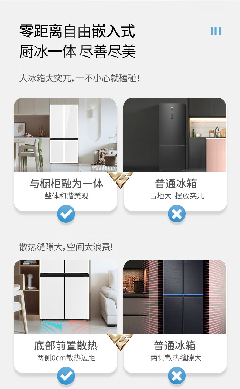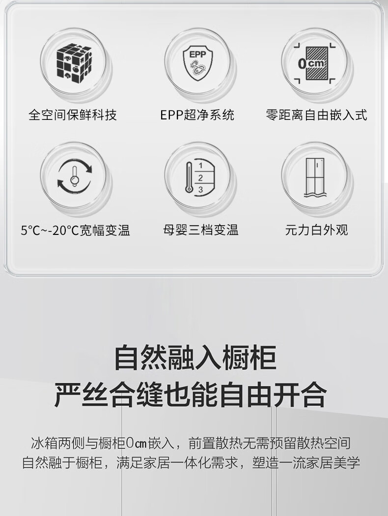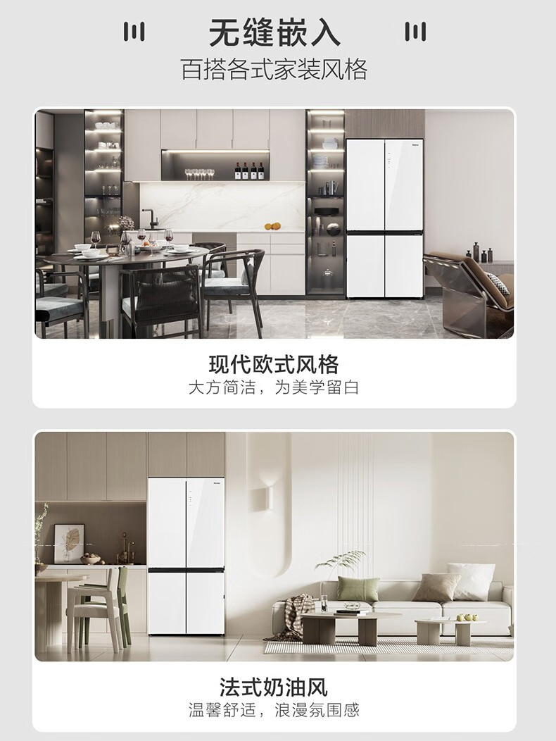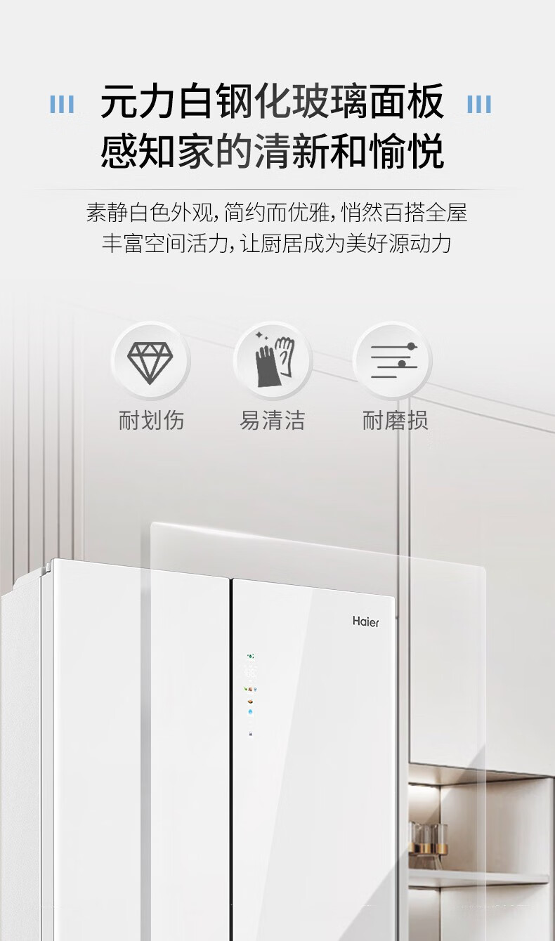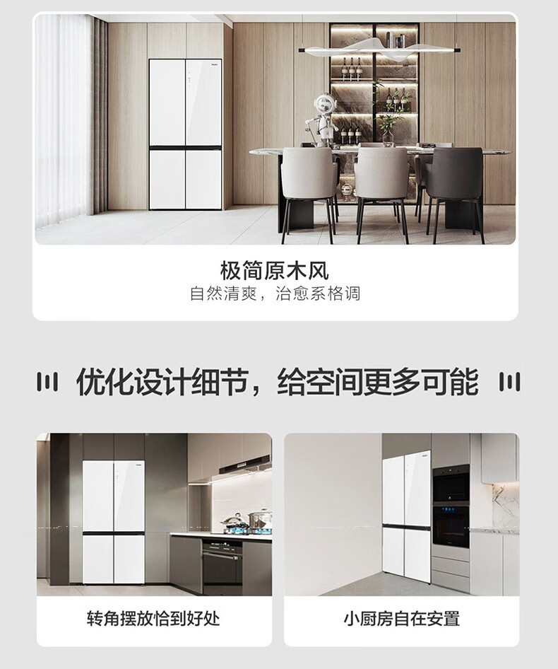 海尔(Haier)冰箱零距离嵌入式全空间保鲜 四开门十字对开门一级双循环风冷无霜家用超薄零嵌除菌净味白色冰箱 506L全空间保鲜+EPP除菌净味+零嵌+底部散热
