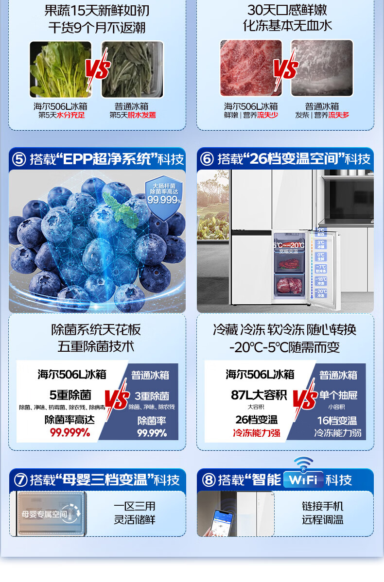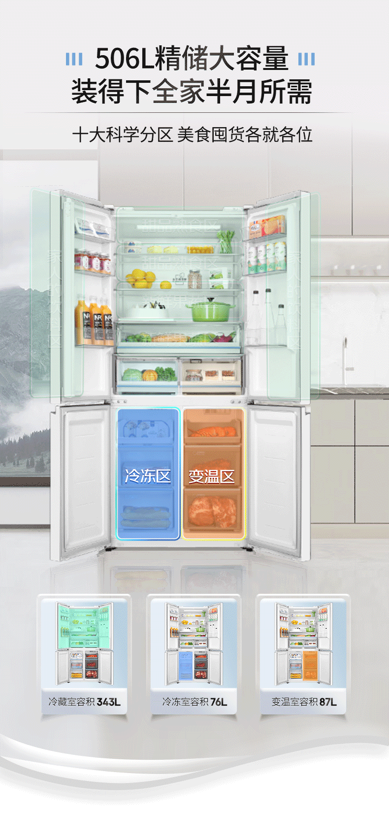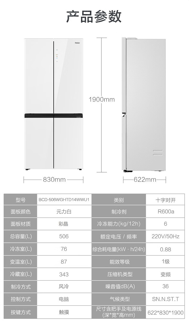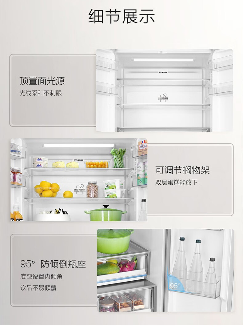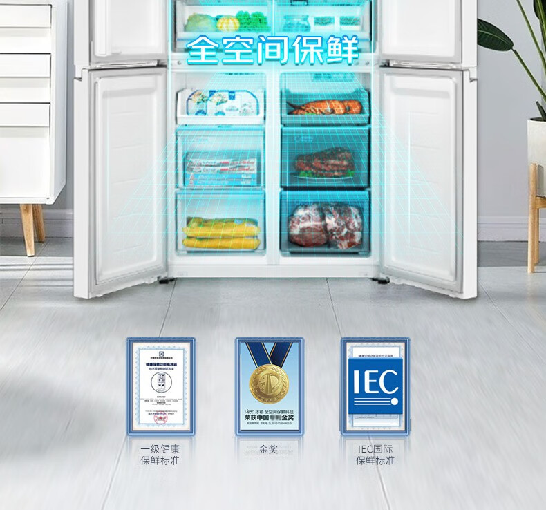 海尔(Haier)冰箱零距离嵌入式全空间保鲜 四开门十字对开门一级双循环风冷无霜家用超薄零嵌除菌净味白色冰箱 506L全空间保鲜+EPP除菌净味+零嵌+底部散热