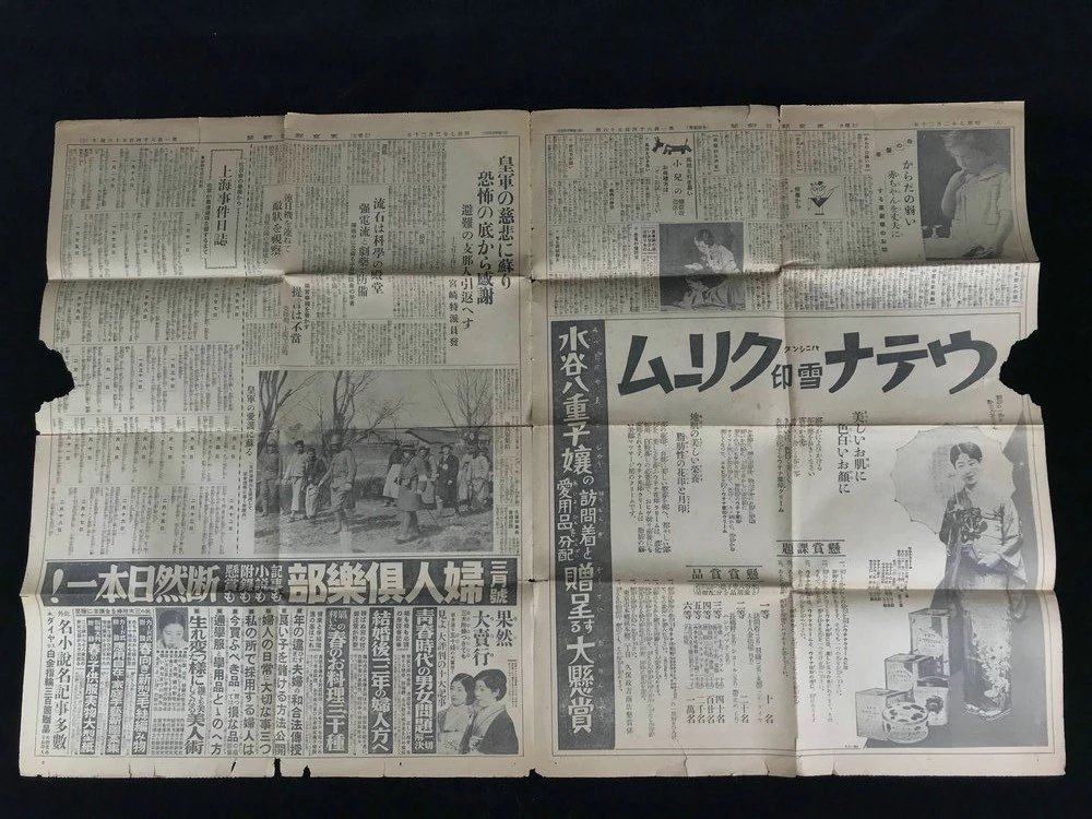 1932年战时地图 上海事变老地图 含上海市街要图(双面 反面为老报纸)出版年:1932年