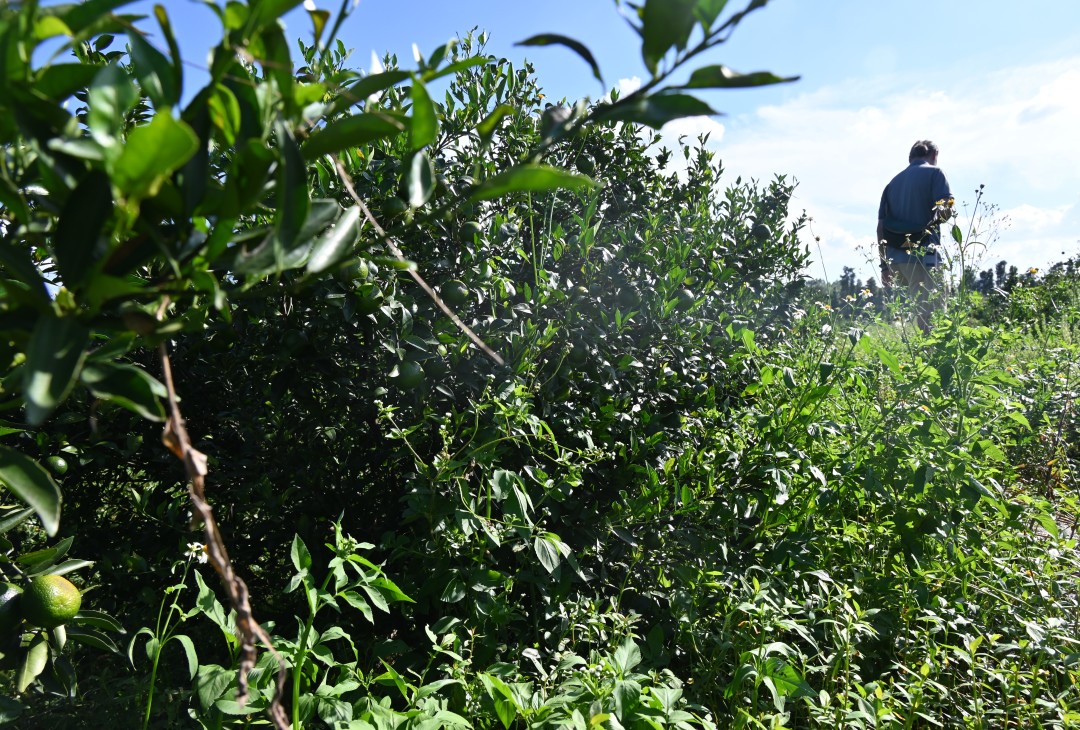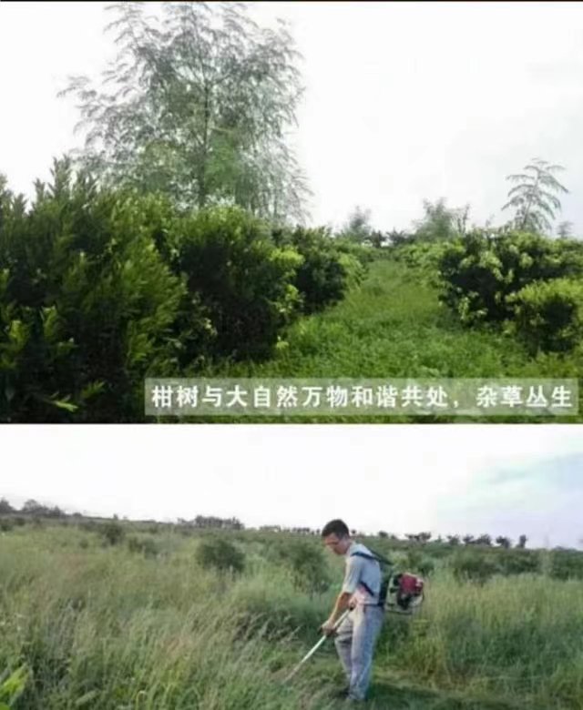 常规种植的柑树,会在不同时期用不同的药剂保花保果,追求产量最大化。果树有病基本用各种农药处理,还会打急救营养剂(类似人生病打吊针)。