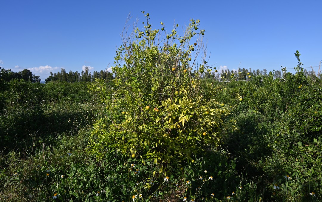 而生态种植的柑树,如果发现有病害不用农药,像图中这颗黄龙病的果树,把枝杆全部去除,等待它重新发出枝芽,如果土壤不遭受破坏,保持果园的生物多样性,新发的的枝芽会健康成长,迎接它的第二次生命。另外也有自然老死的果树,会来年补种,顺其自然的生长。