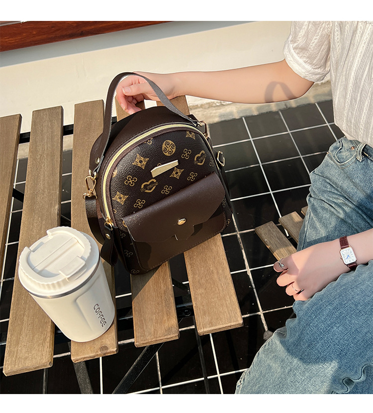 花料背包2023黛唯梵时尚双肩包女包包女清新甜美学生书包