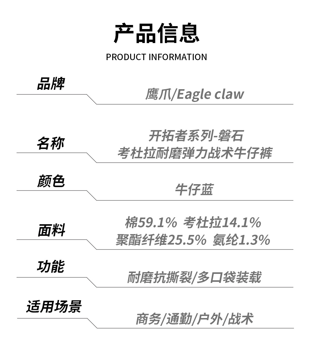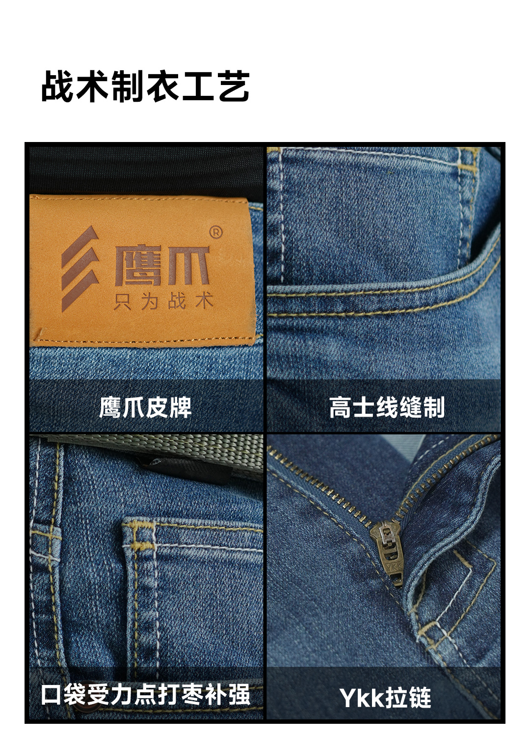鹰爪磐石战术牛仔裤弹力四季款考杜拉牛仔裤