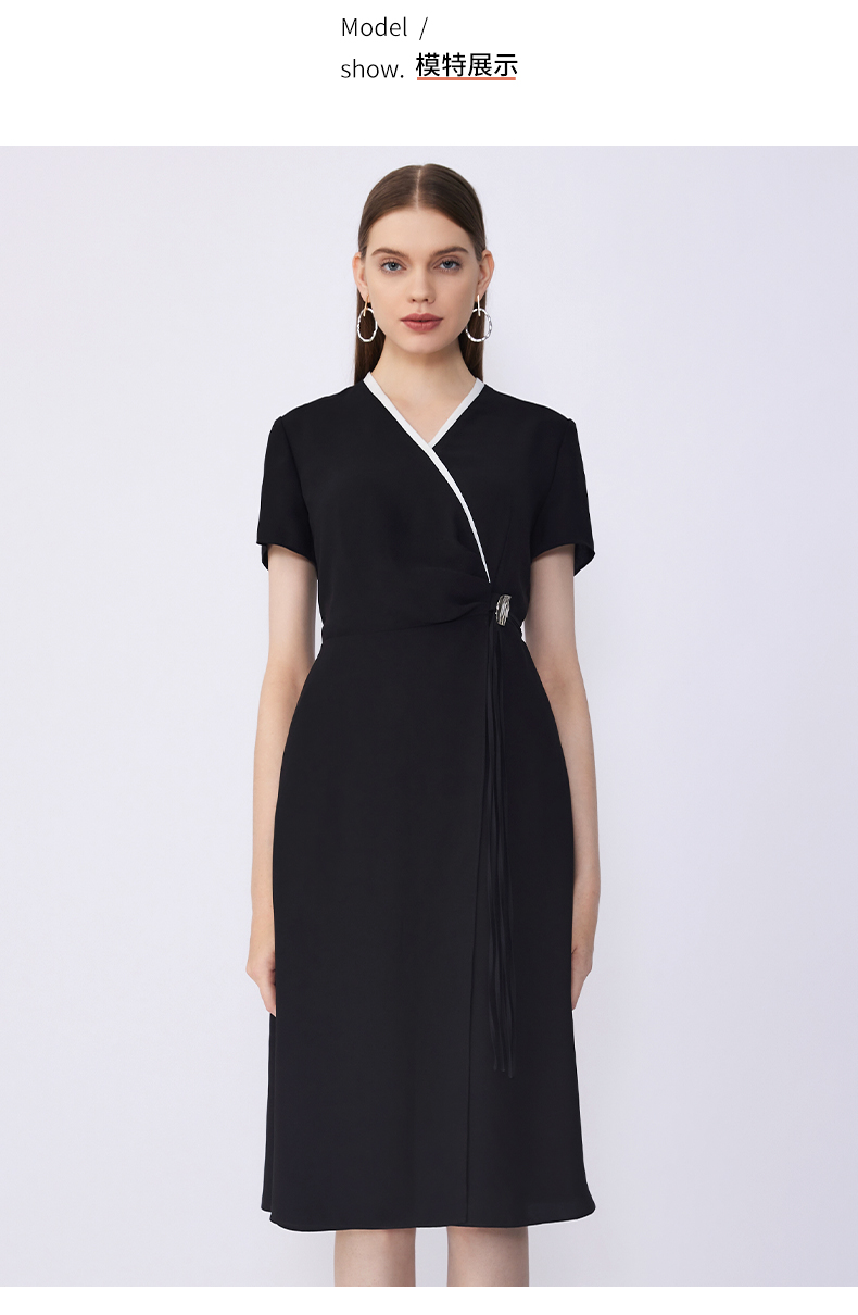 皮尔卡丹女装2023年新款通勤淑女连衣裙C32DS029B2