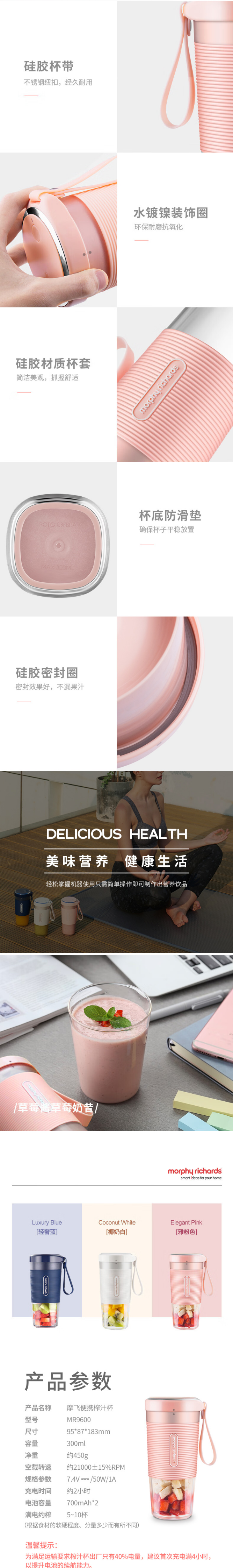 摩飞(13517)榨汁杯便携式榨汁机果汁杯家用小型无线充电迷你 MR9600