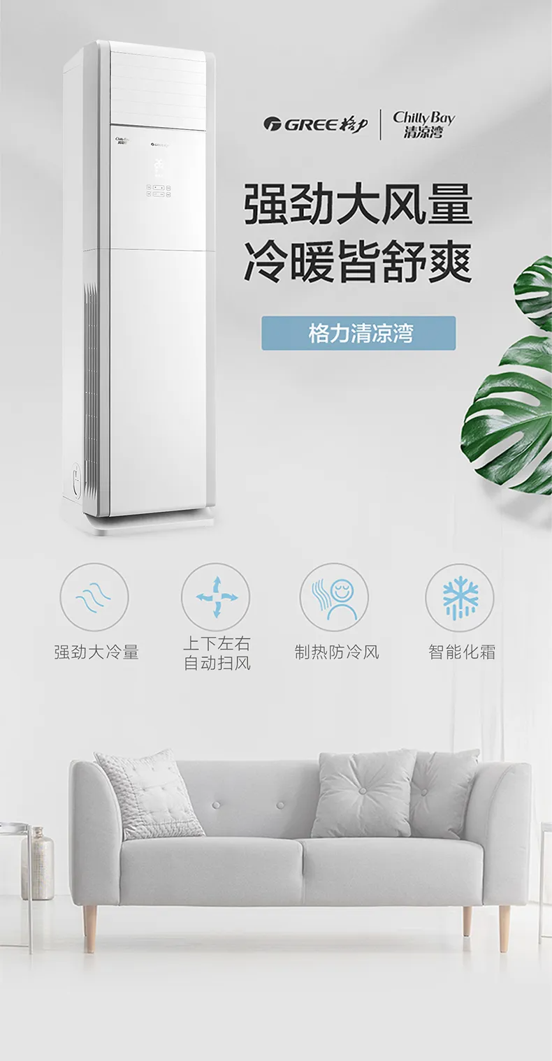 格力·清凉湾定频冷暖3匹2级能效单元柜机空调 380V电源 RF7.2WQ/NhB-N2JY01 浅灰