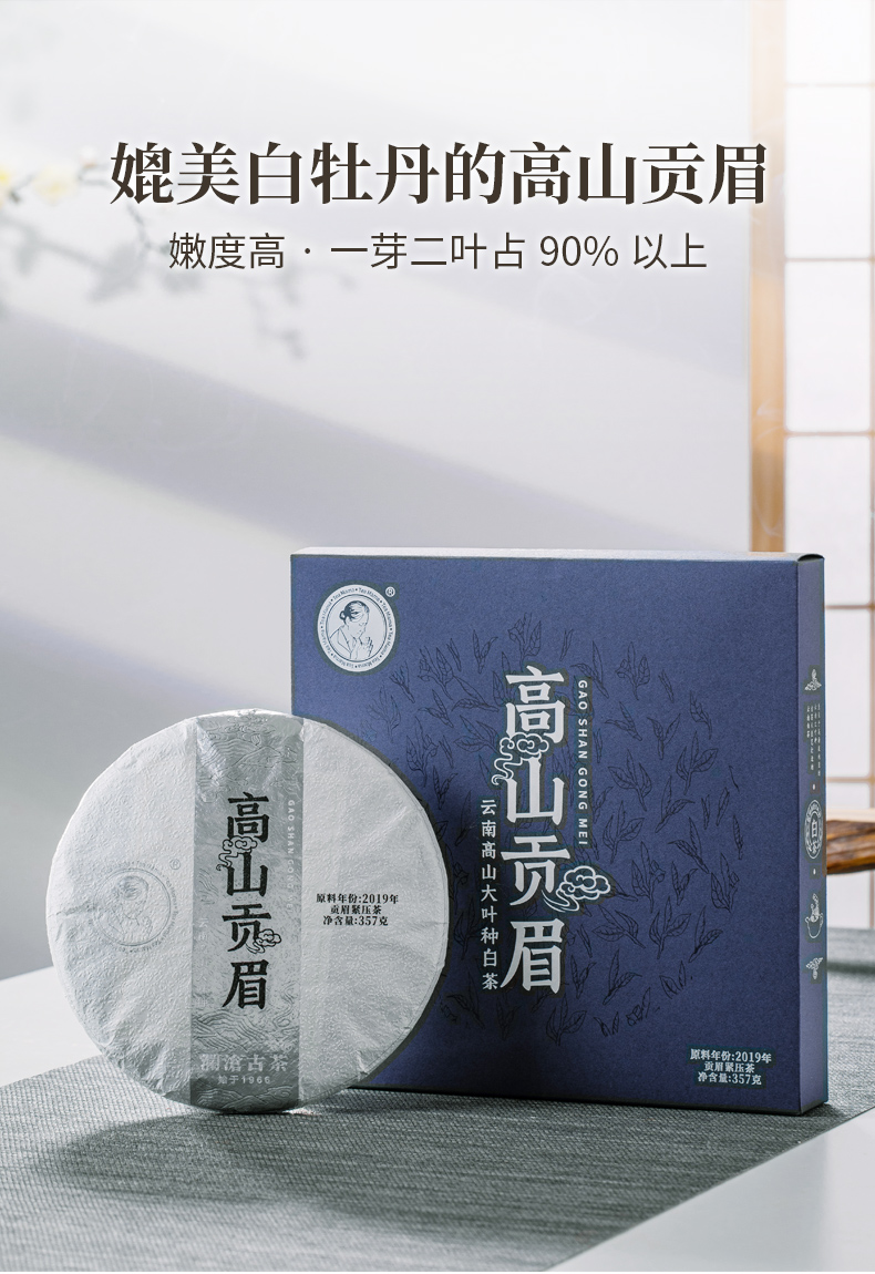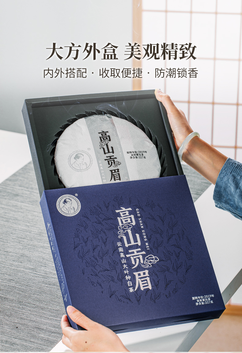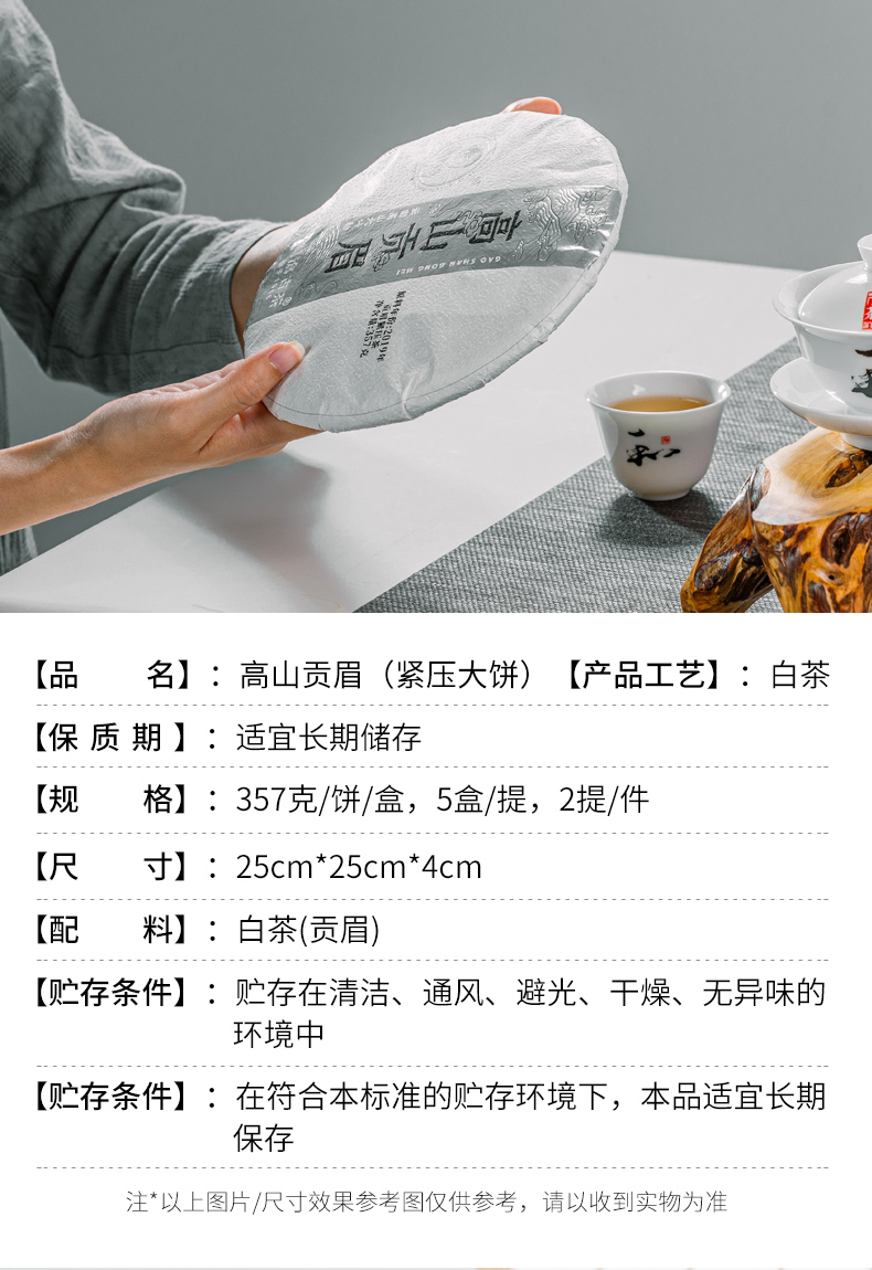 高山贡眉大饼(单盒装) 白茶,357克,2023年