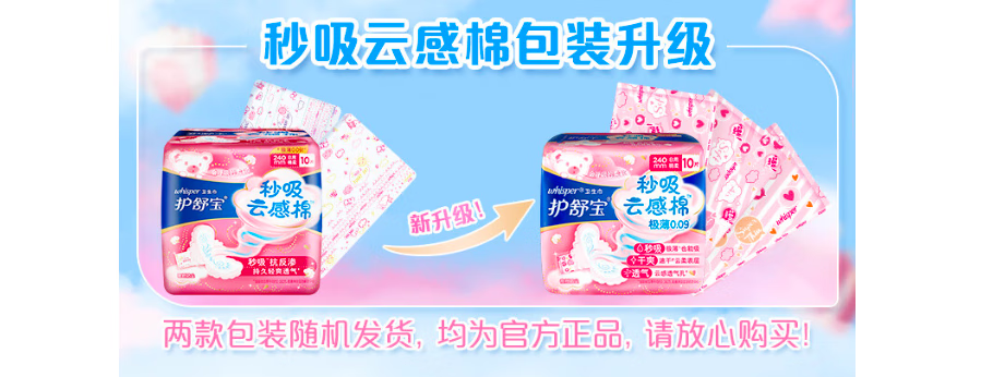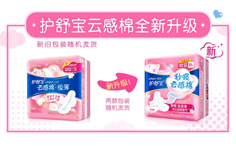 护舒宝卫生巾套装超薄秒吸秒吸云感棉组合套装日用量多夜用卫生巾组合装 【60片】 日用40片+量多20片