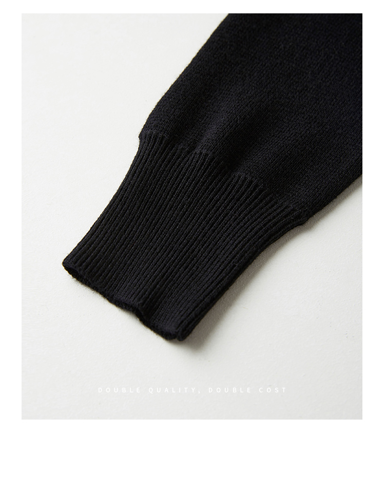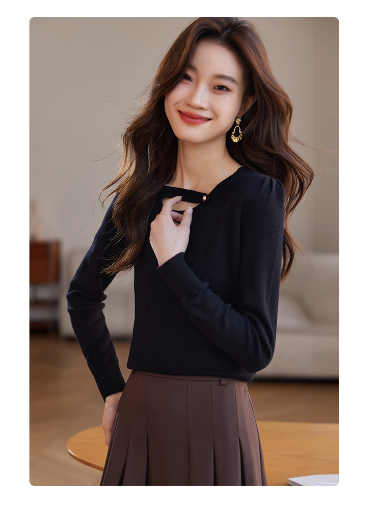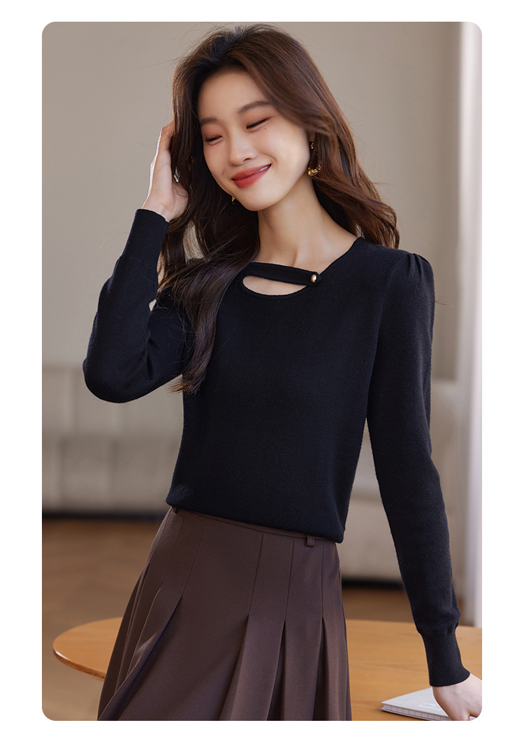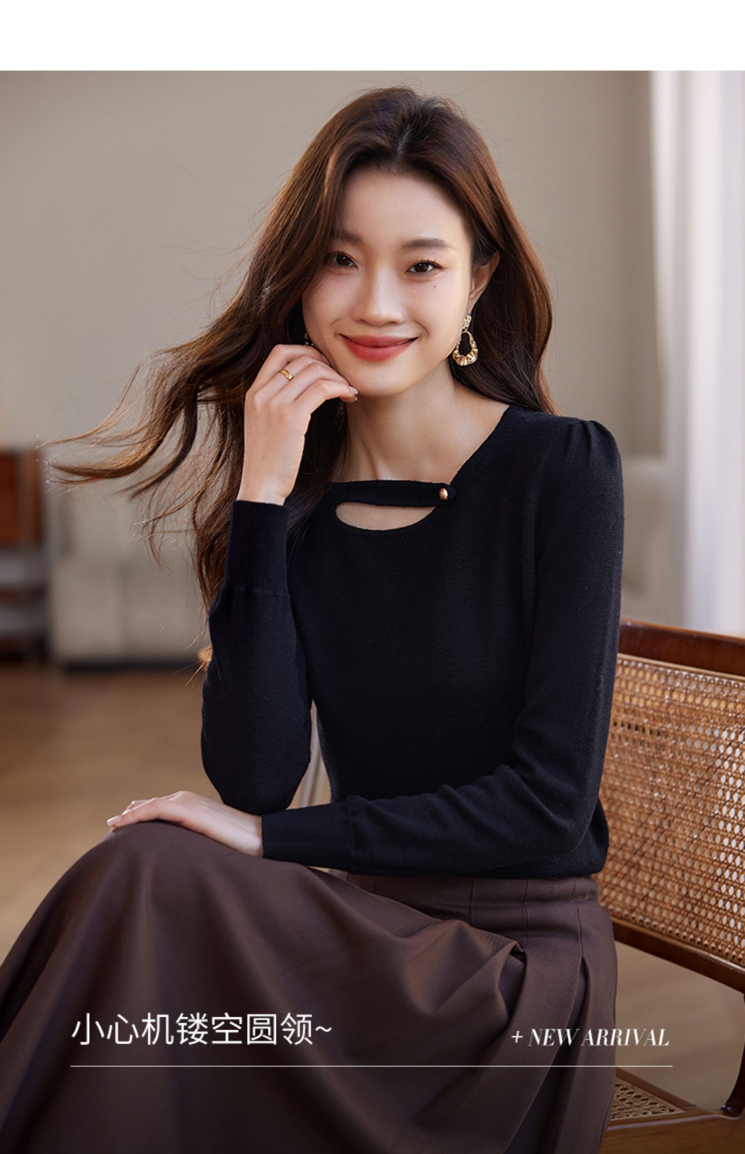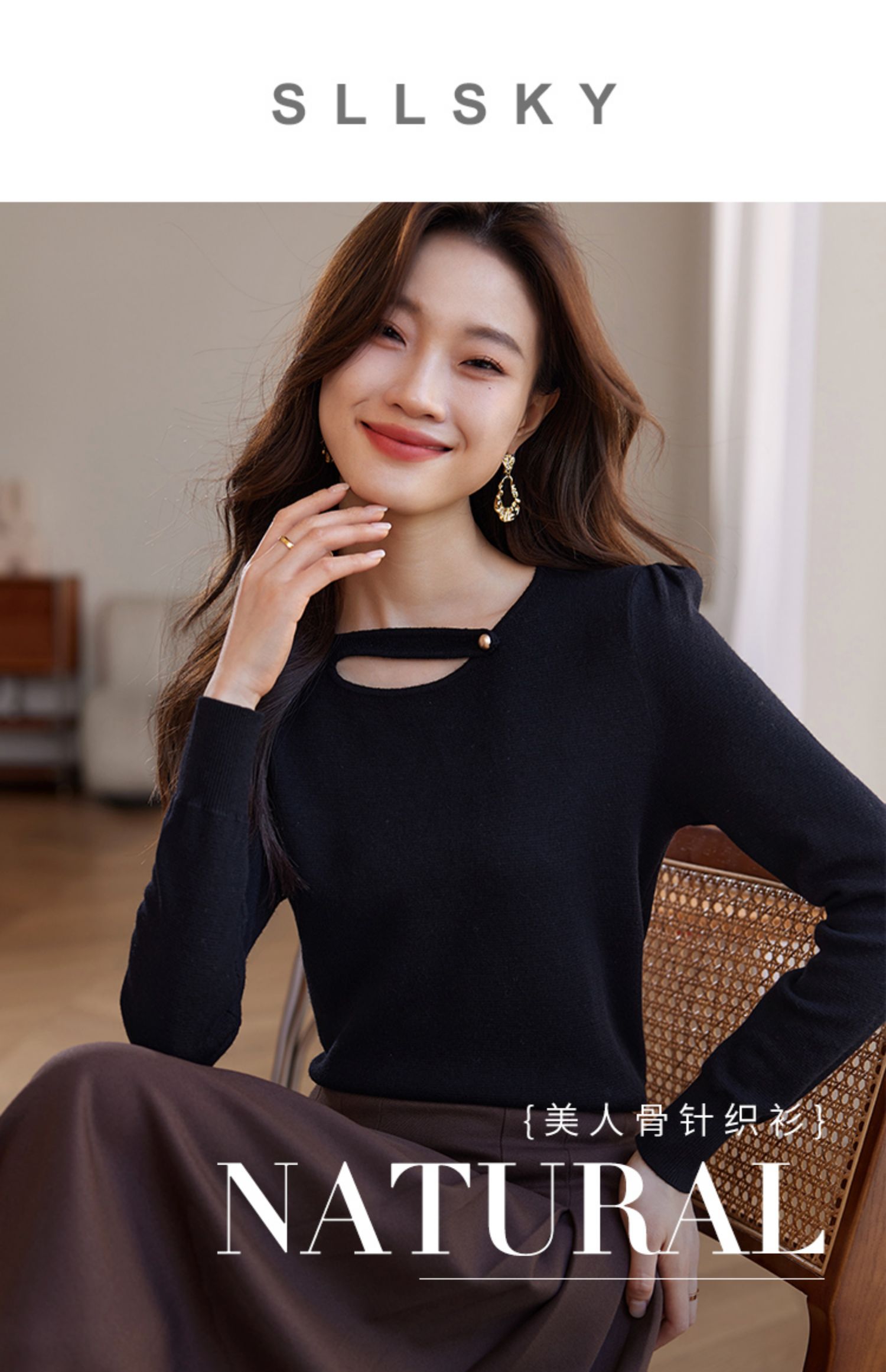 【年终特卖】熙世界黑色时尚针织打底衫女秋冬设计感圆领宽松软糯风内搭毛衣