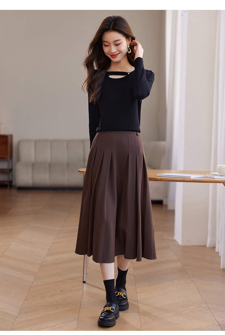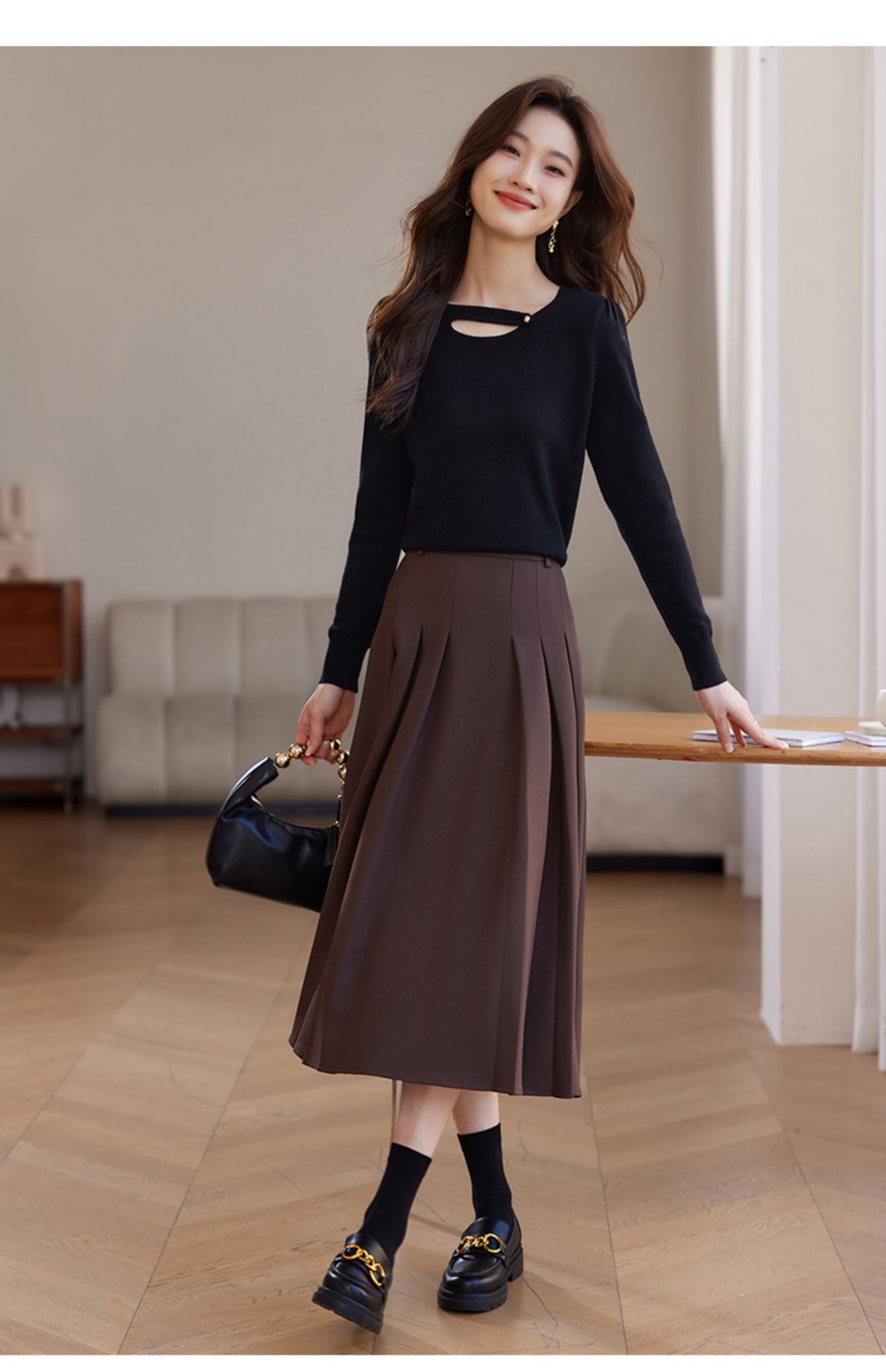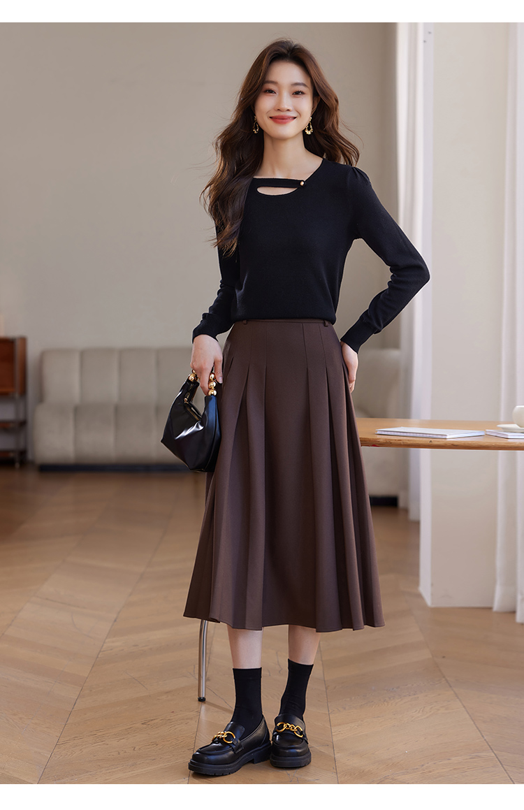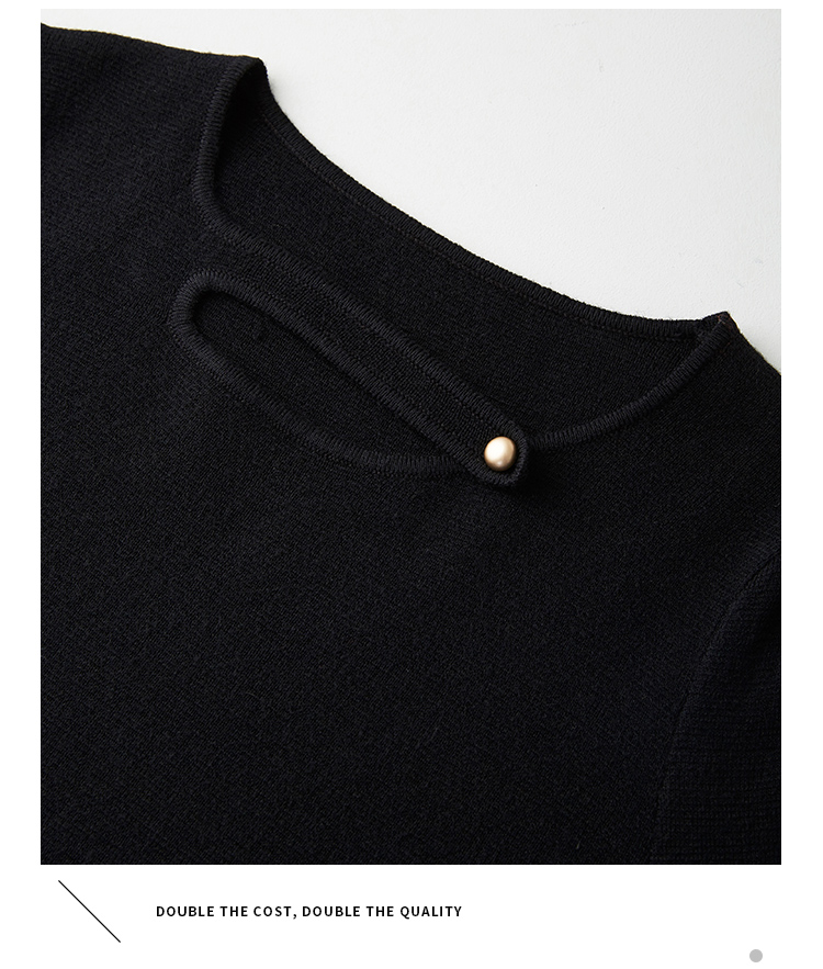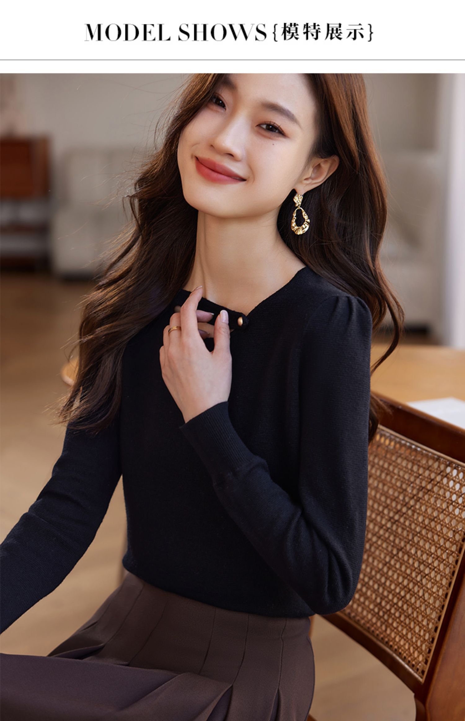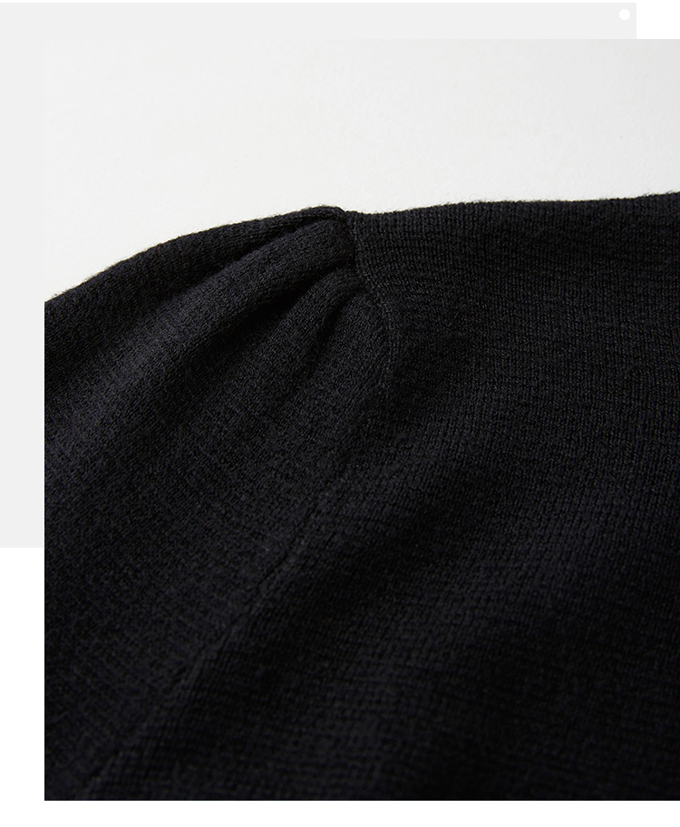 【年终特卖】熙世界黑色时尚针织打底衫女秋冬设计感圆领宽松软糯风内搭毛衣