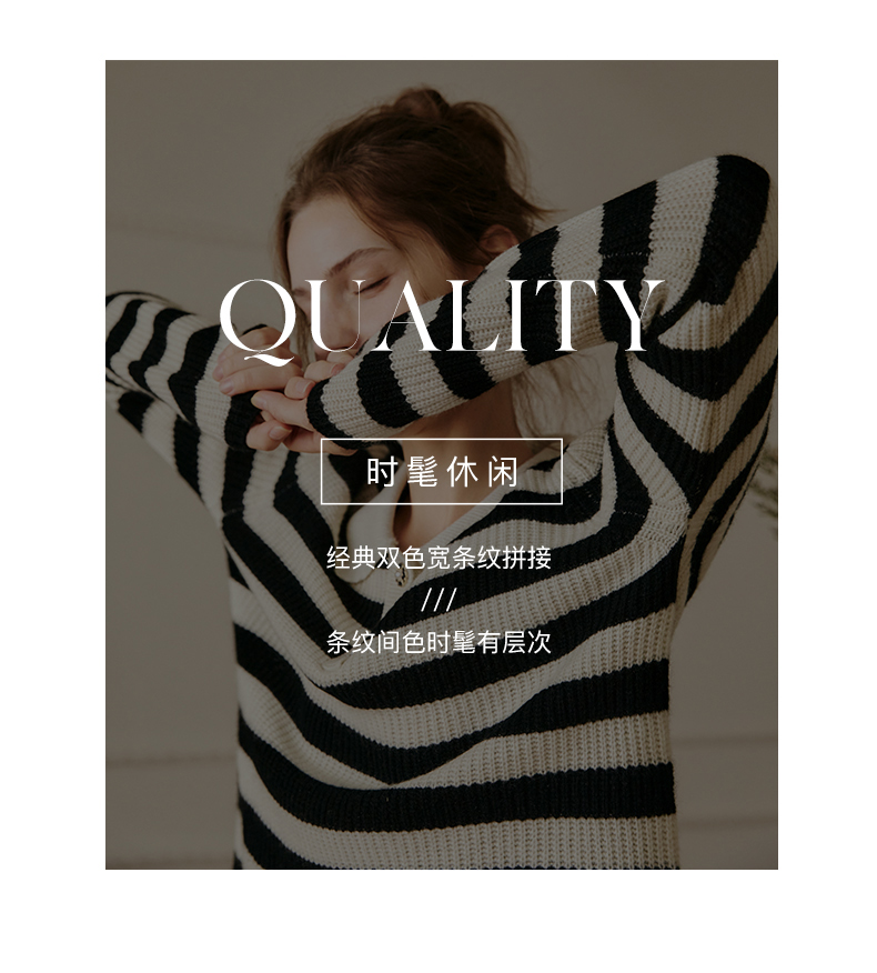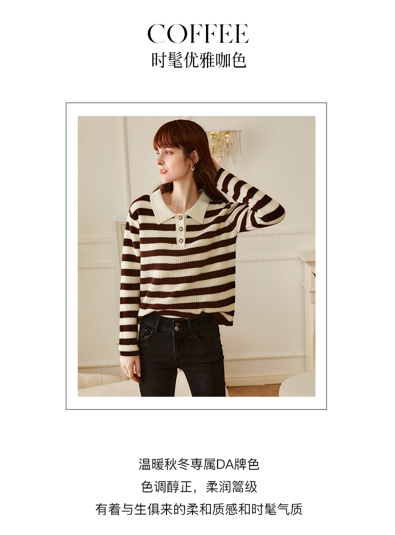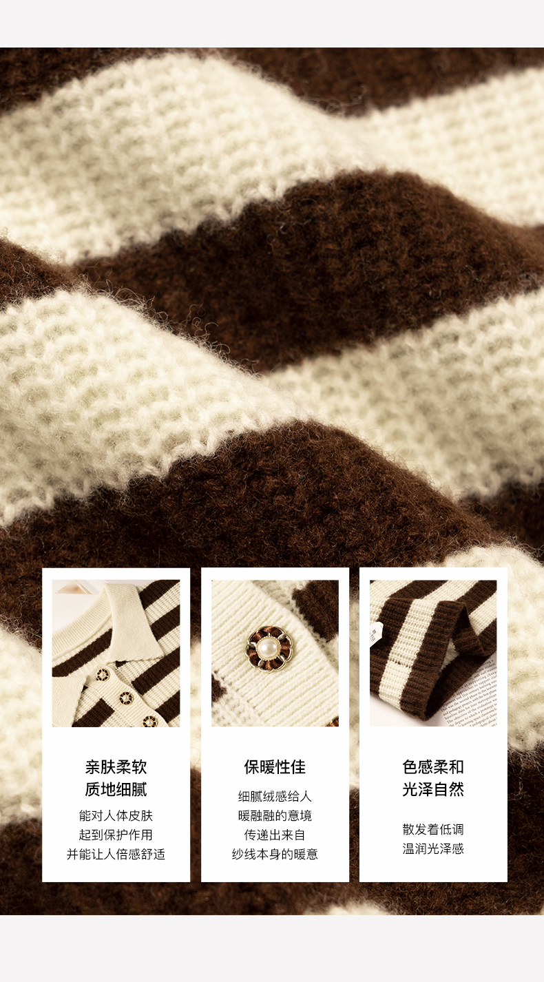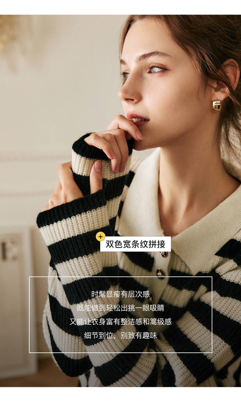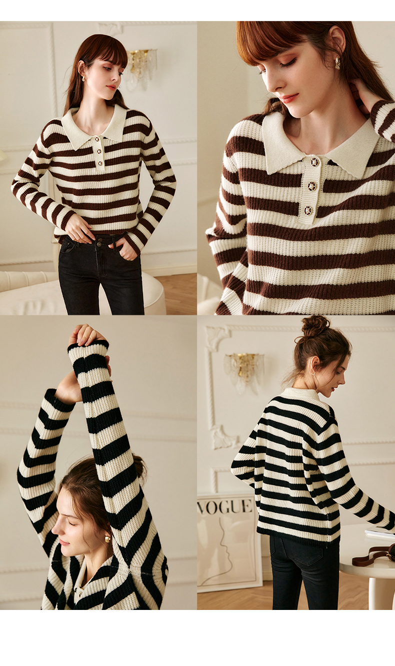 OLrain欧芮儿条纹针织衫女冬2025新款法式宽松显瘦POLO领长袖上衣