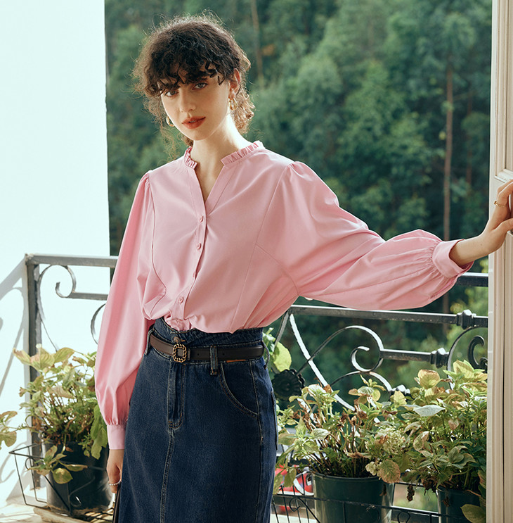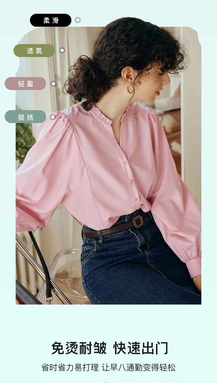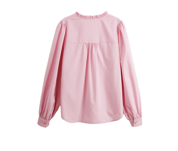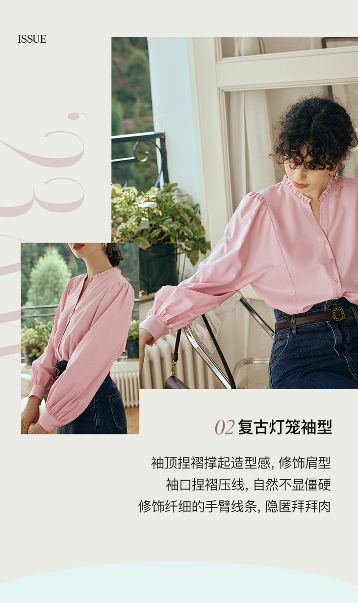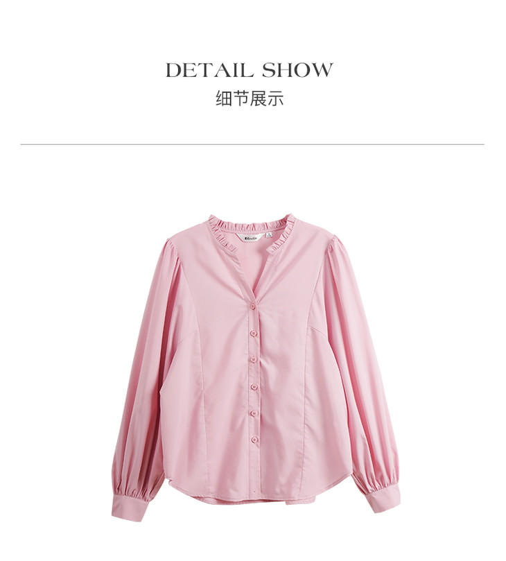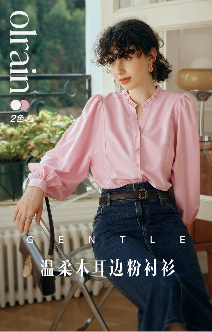 OLrain欧芮儿粉色蕾丝雪纺衫女初秋2023年新款宽松木耳边减龄小衫