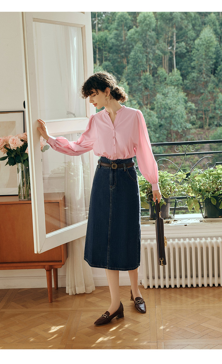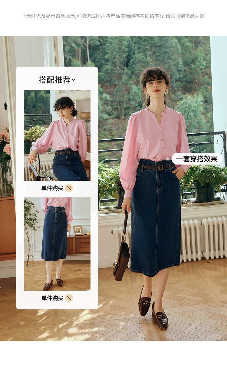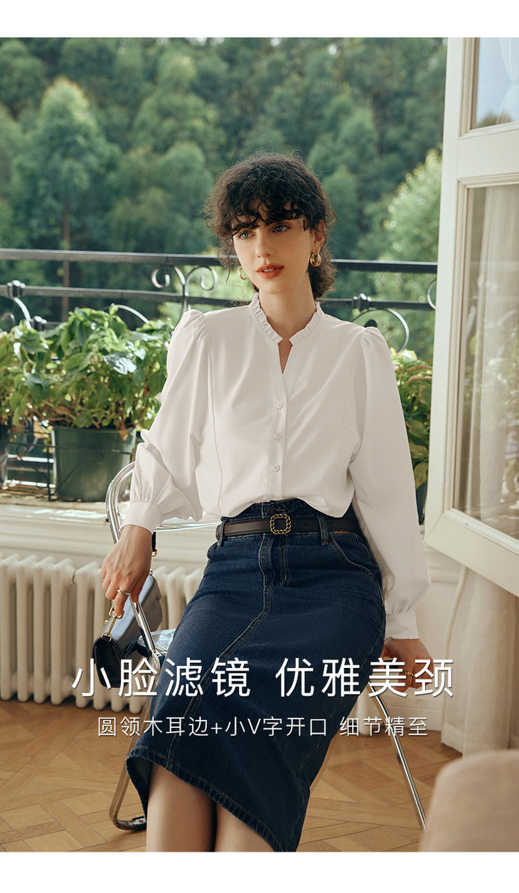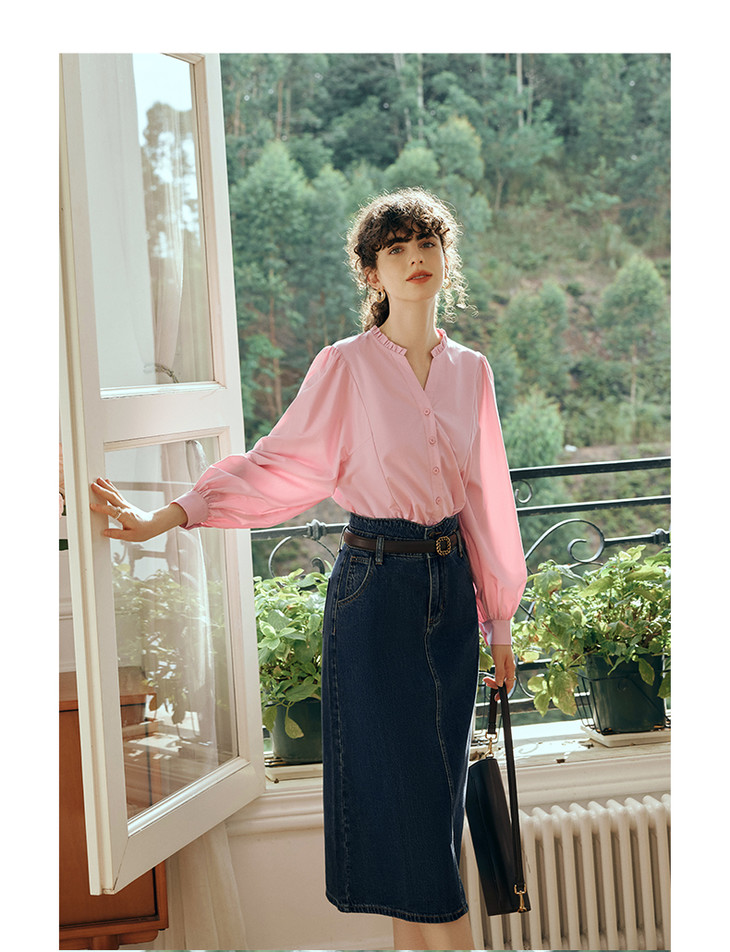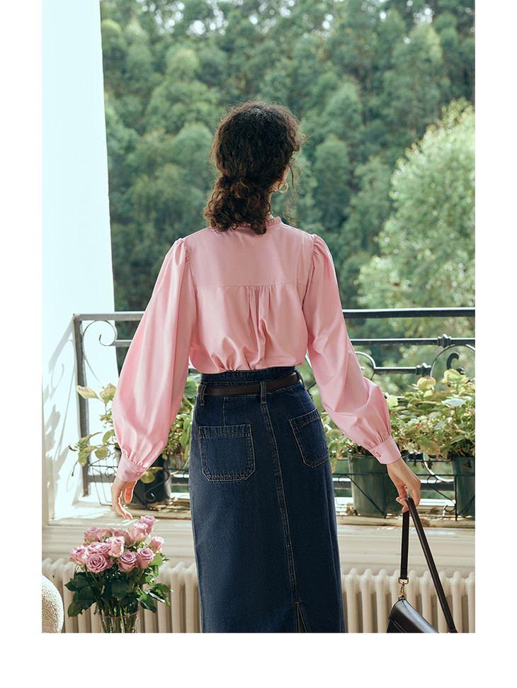 OLrain欧芮儿粉色蕾丝雪纺衫女初秋2023年新款宽松木耳边减龄小衫