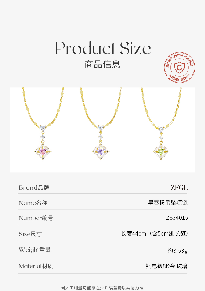 ZEGL设计师早春调色盘系列几何项链女925纯银轻奢小众锁骨链配饰