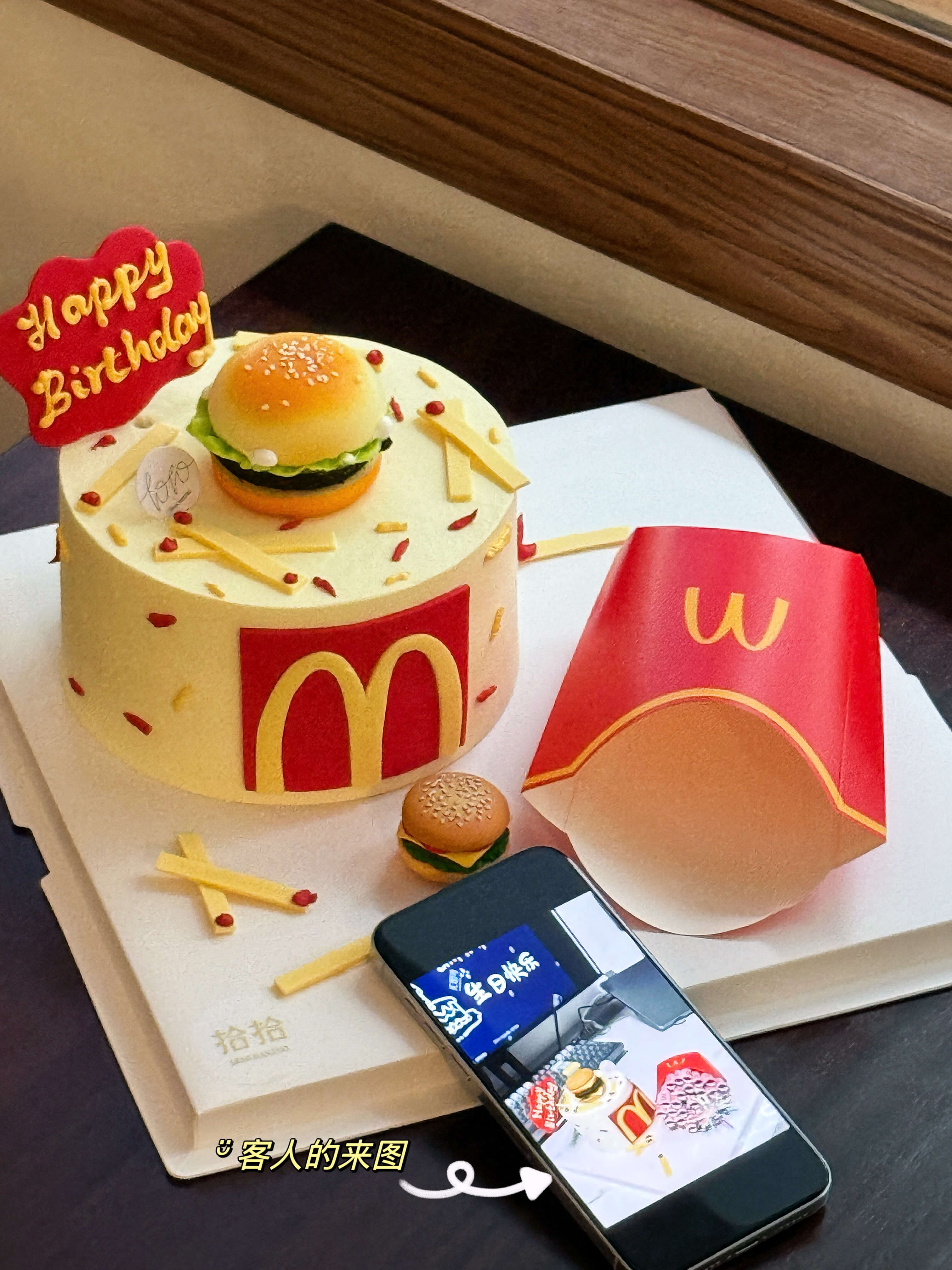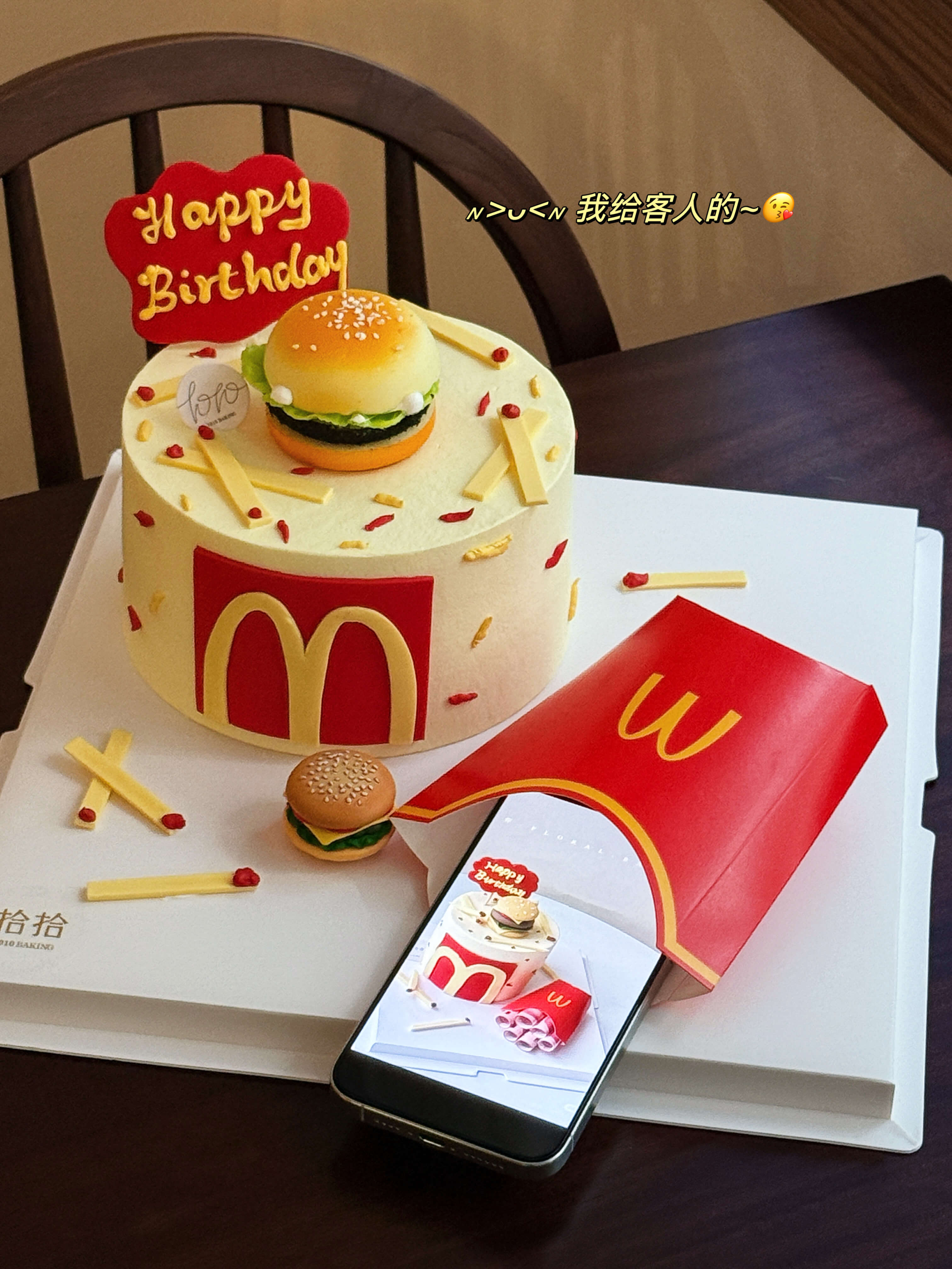 「M记·麦当劳主题」惊喜糕送女友·翻糖巧克力·100%动物奶油(附图5寸·提前5小时预订)