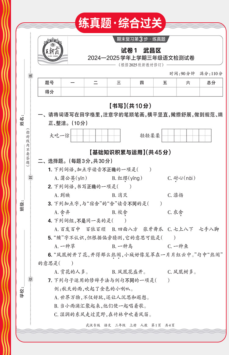 【武汉专版】1-6年级2025秋武汉期末真题精编语数英(上)