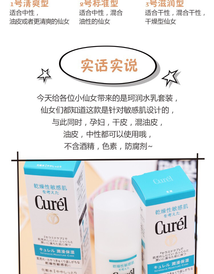 日本 花王Curel/珂润水乳套装 1号清爽型化妆水+乳液 干燥敏感肌