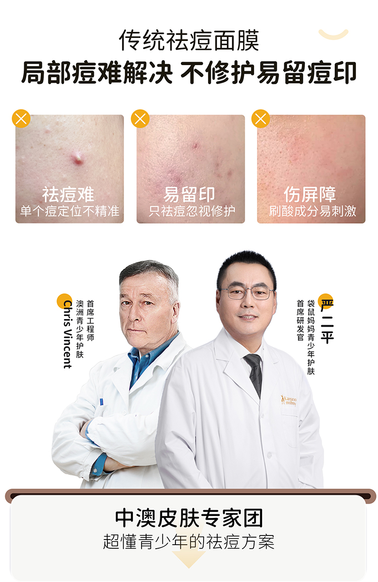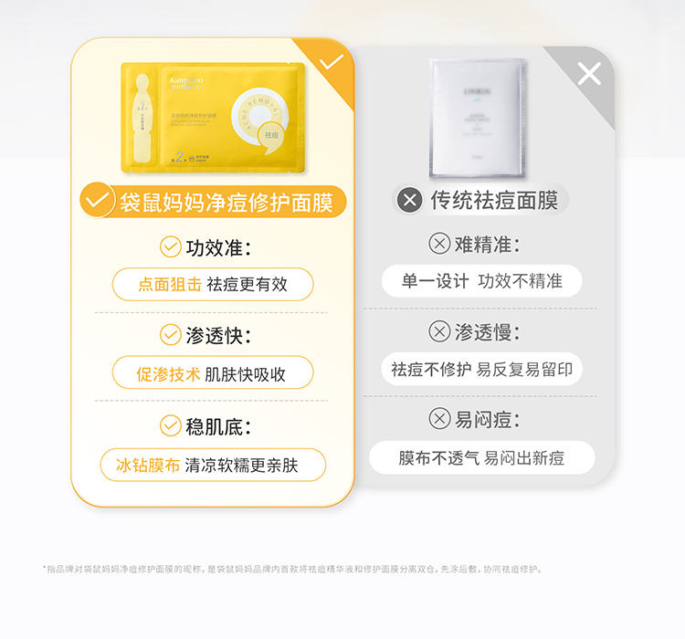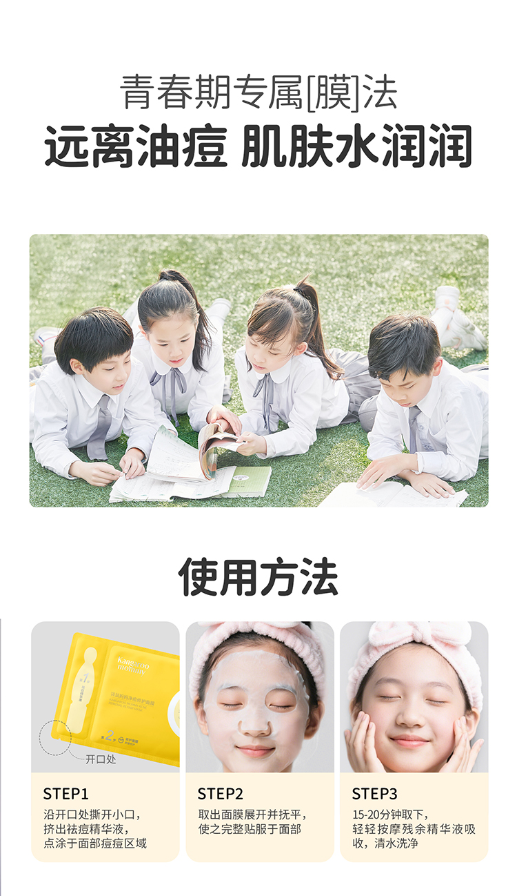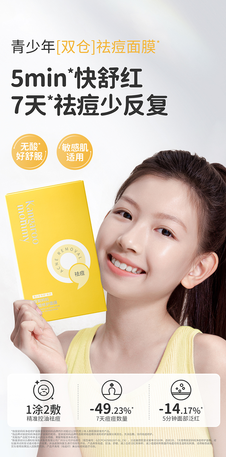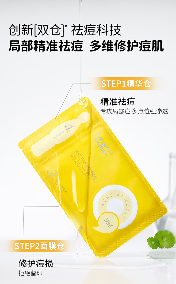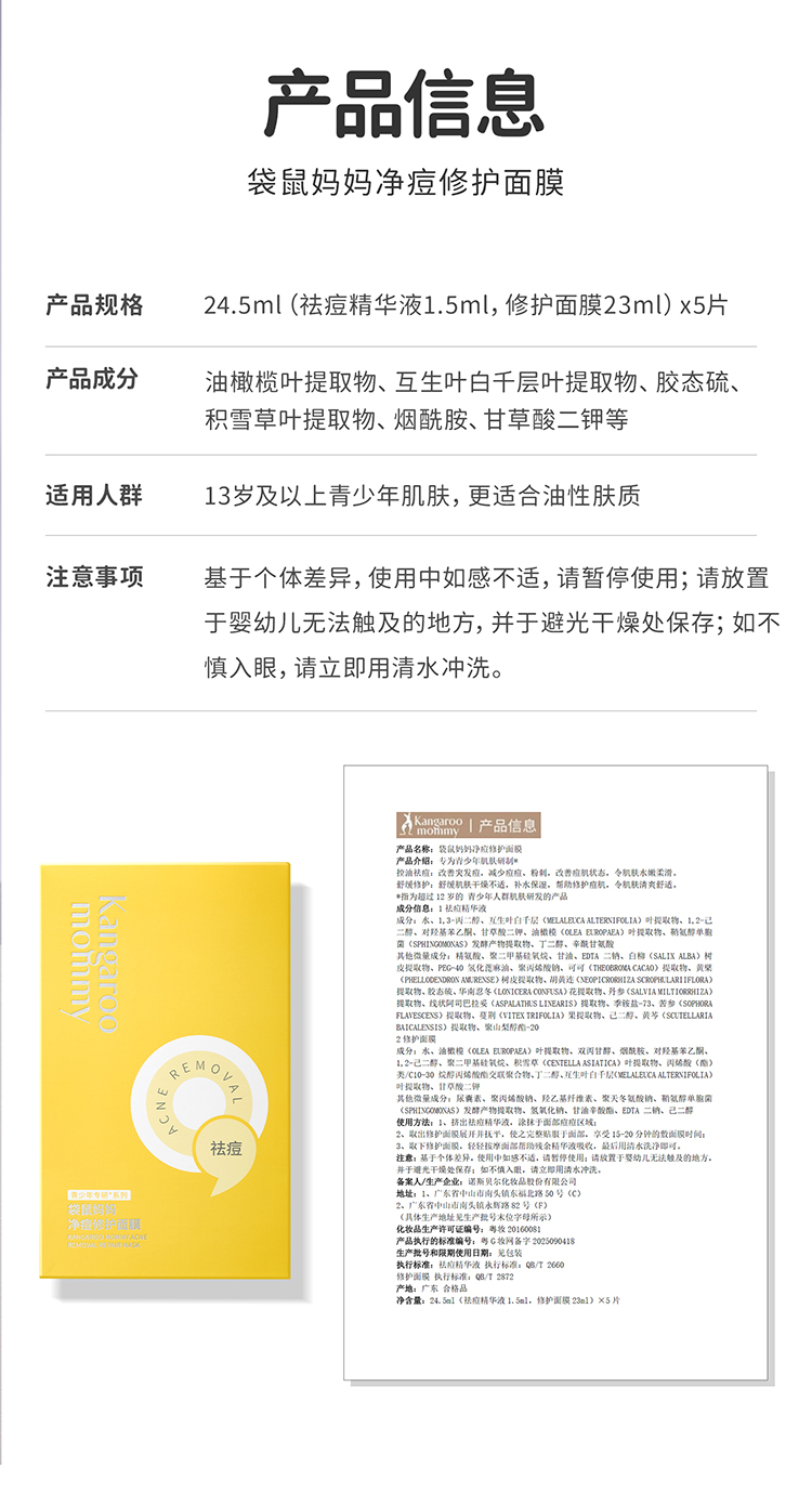 【青少年祛痘面膜】局部精准祛痘 全脸修护痘损 袋鼠妈妈净痘修护面膜-24.5mlx5片