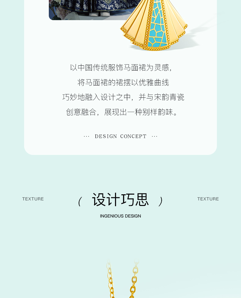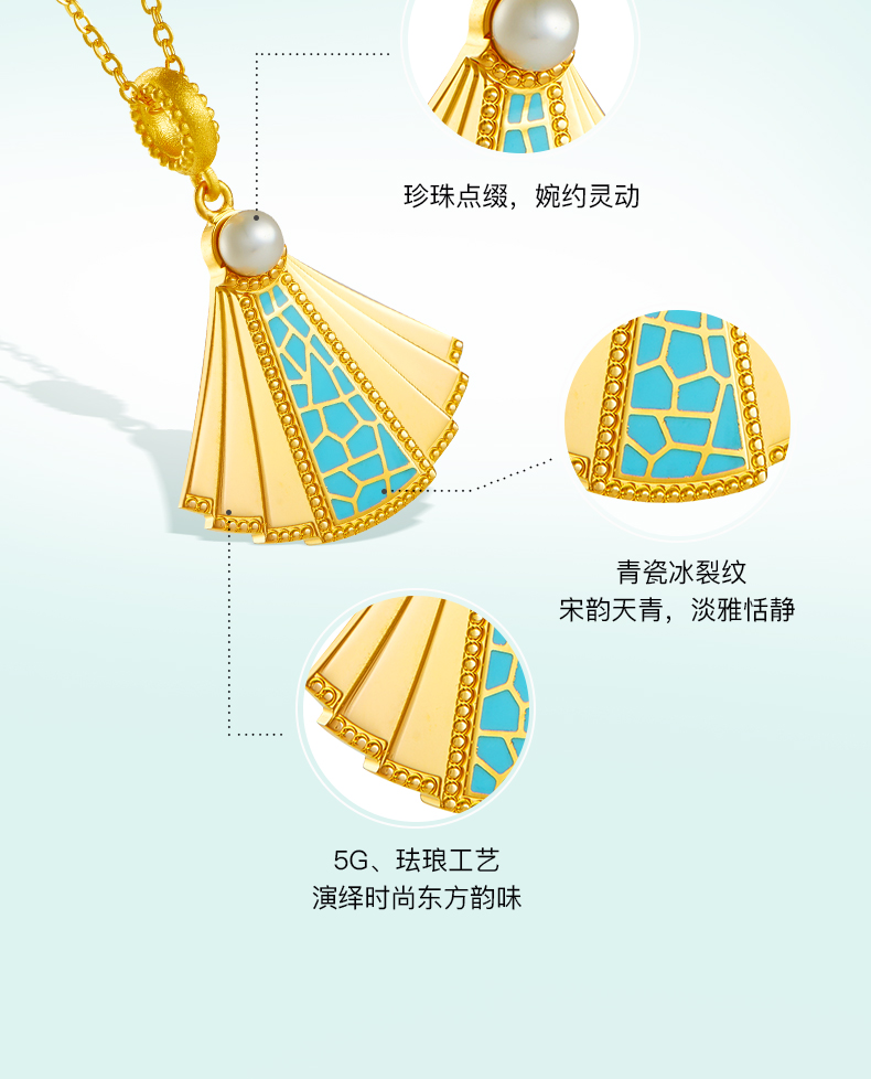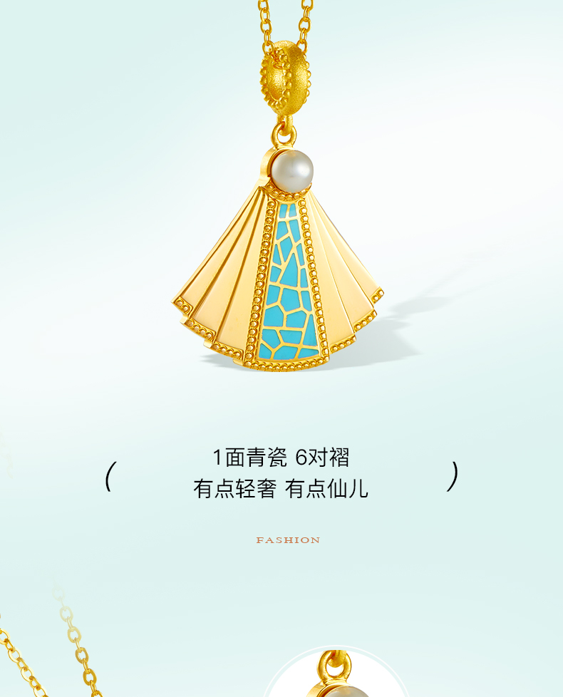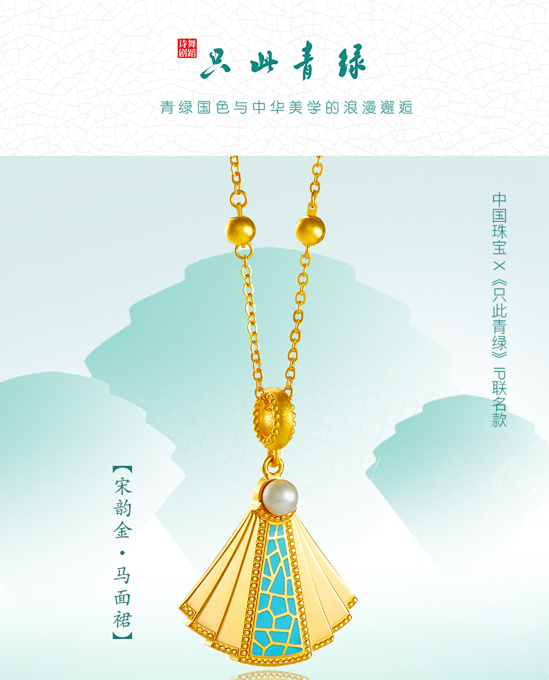 「只此青绿」宋韵金马面裙足金吊坠 珐琅黄金挂坠