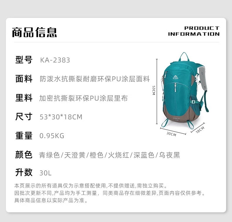 【新品秒杀!限时48小时 !】艾王户外登山包轻量化22/30/35升大容量背负系统双肩包耐磨防泼旅行背包KA-2383