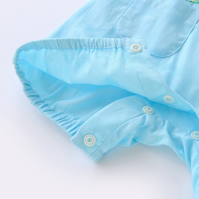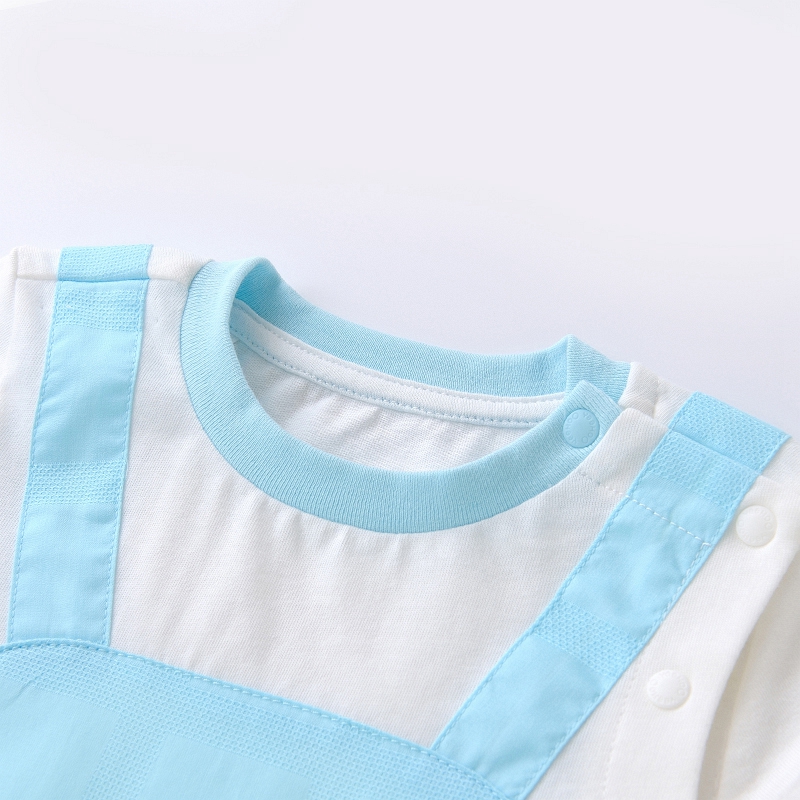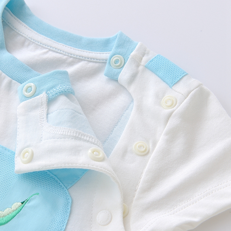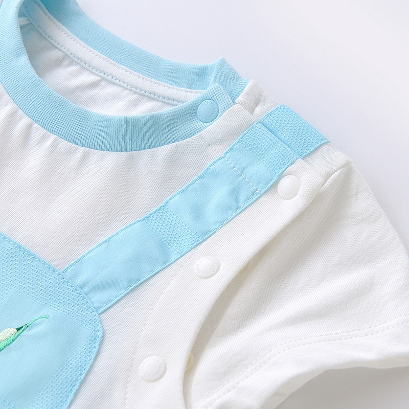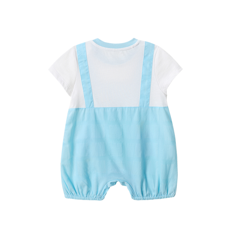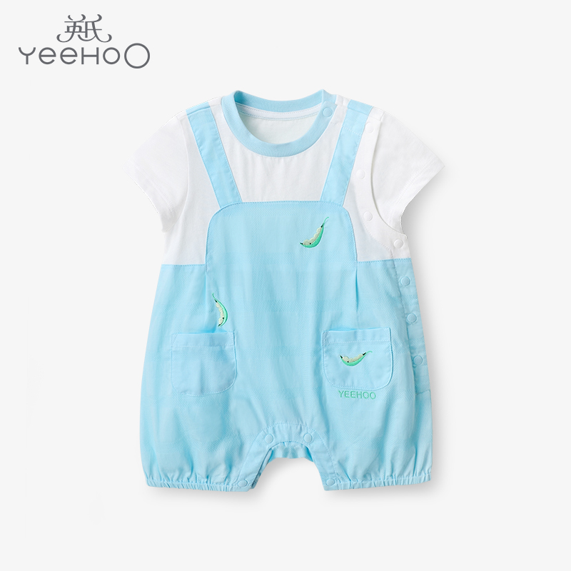 英氏婴儿纯棉短哈男宝宝连体衣夏季假2件可爱爬服YRHBJ22375A