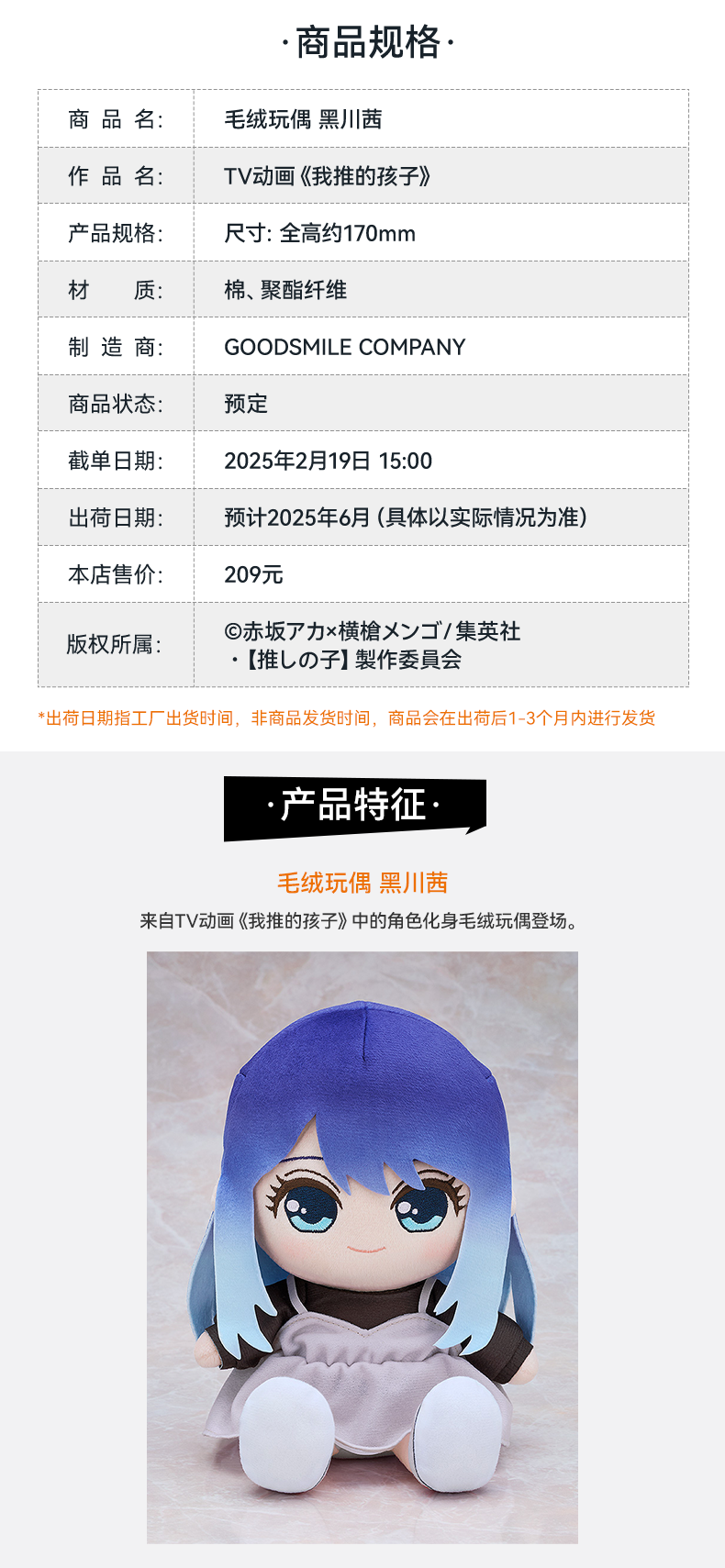 【GSC现货】毛绒玩偶 黑川茜 我推的孩子