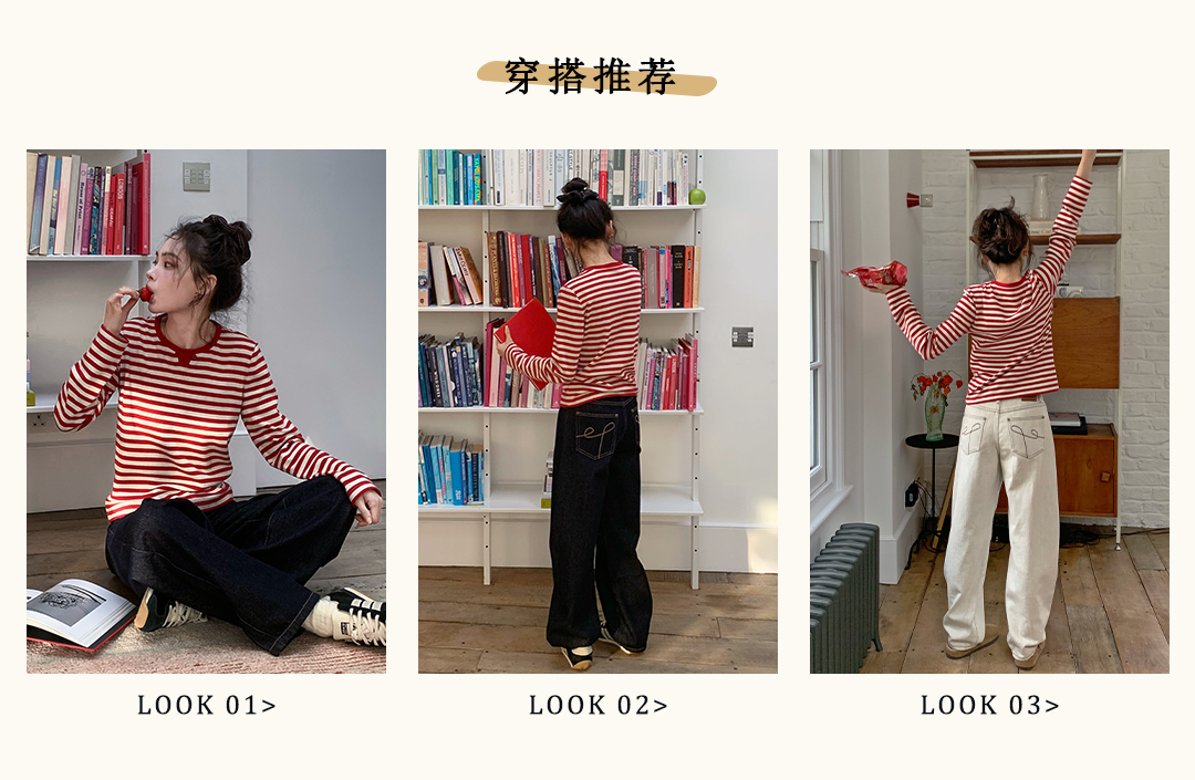 浮生八记/25C197/海魂衫条纹长袖t恤
