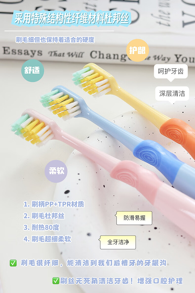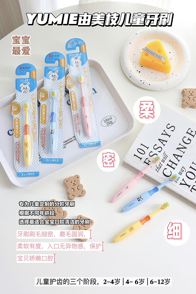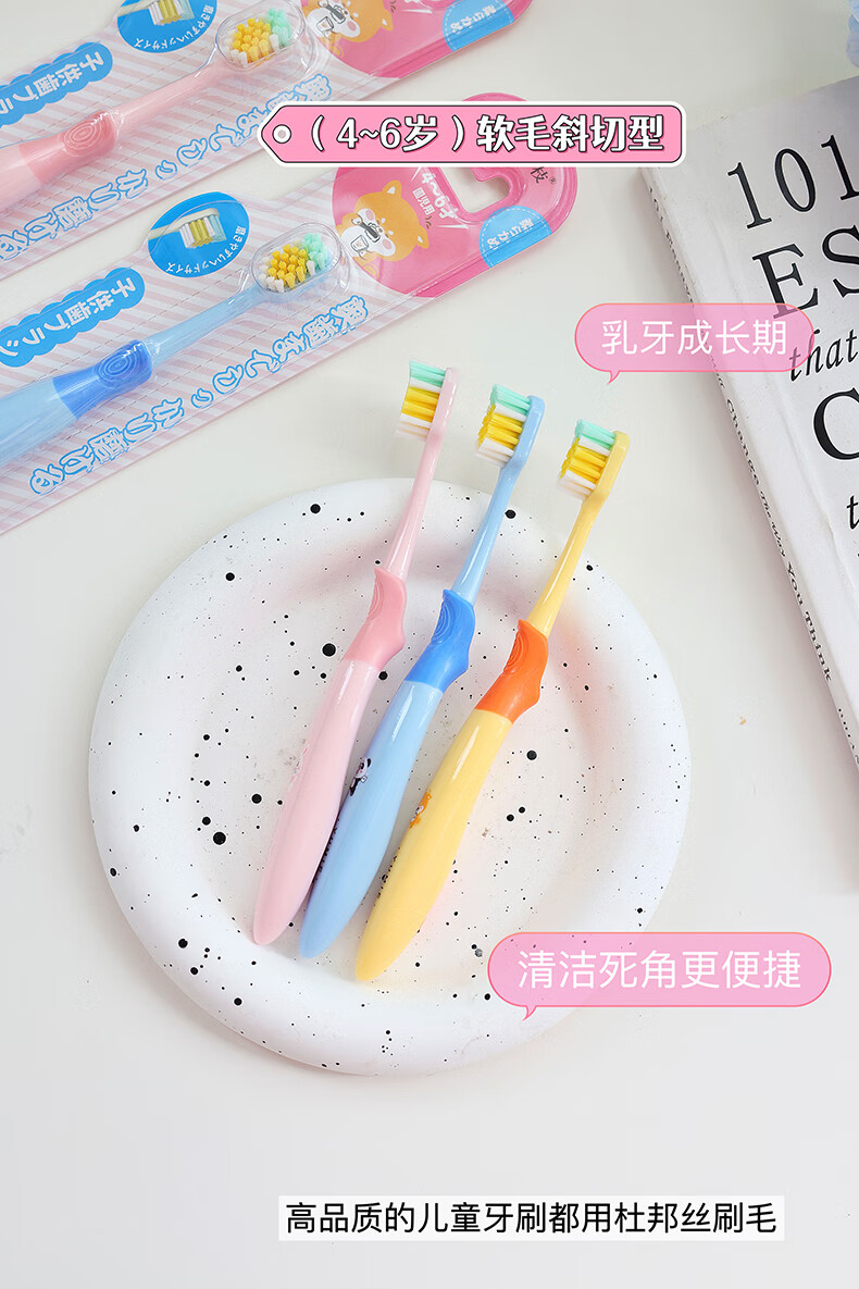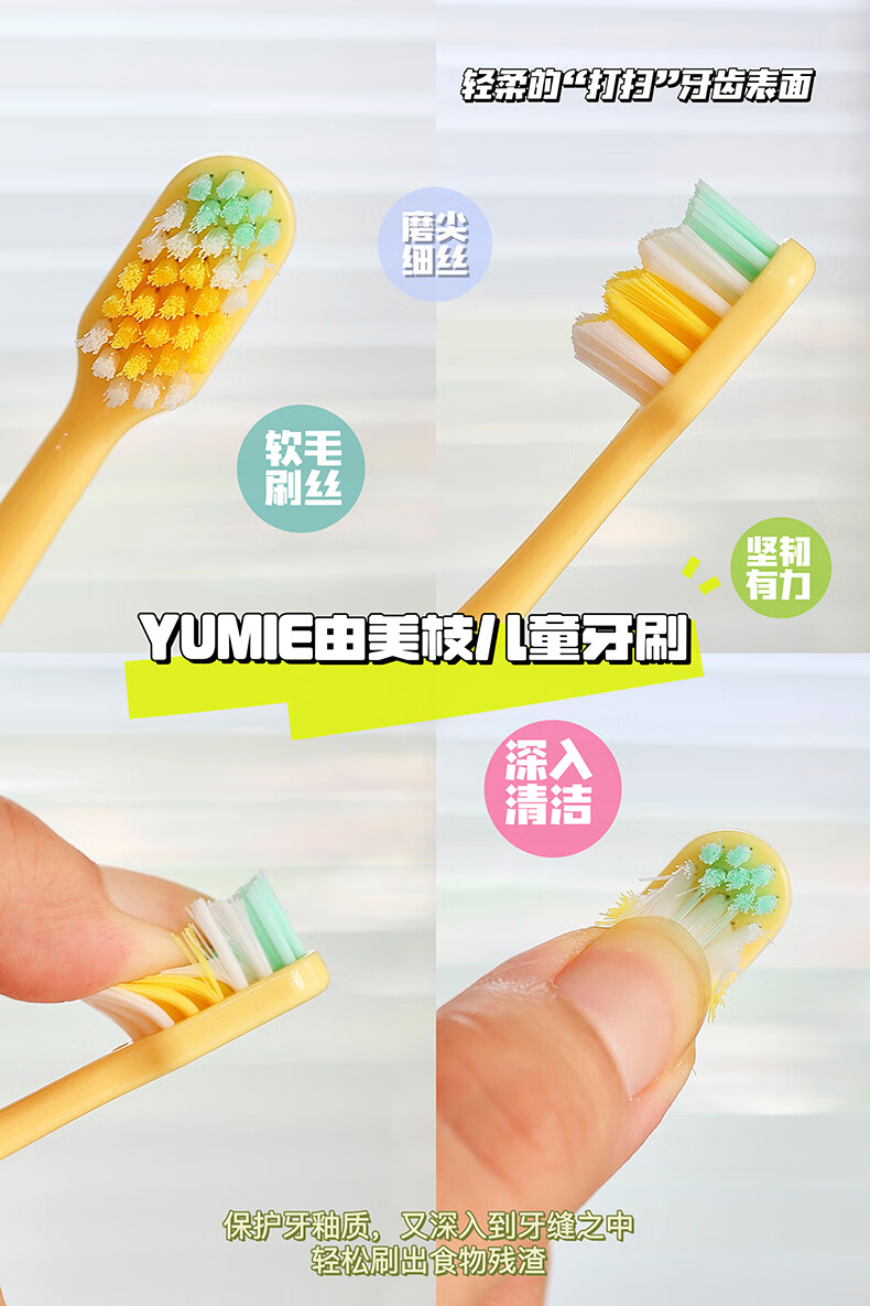 【4-6岁】YUMIE由美枝分阶儿童牙刷软毛斜切1支/117808 颜色随机波浪形刷毛设计深层清洁